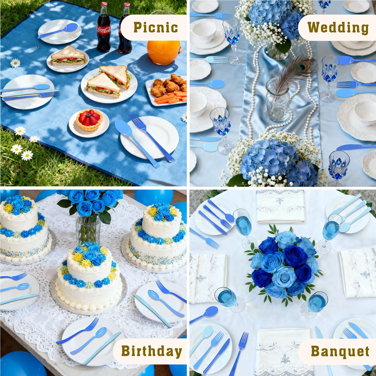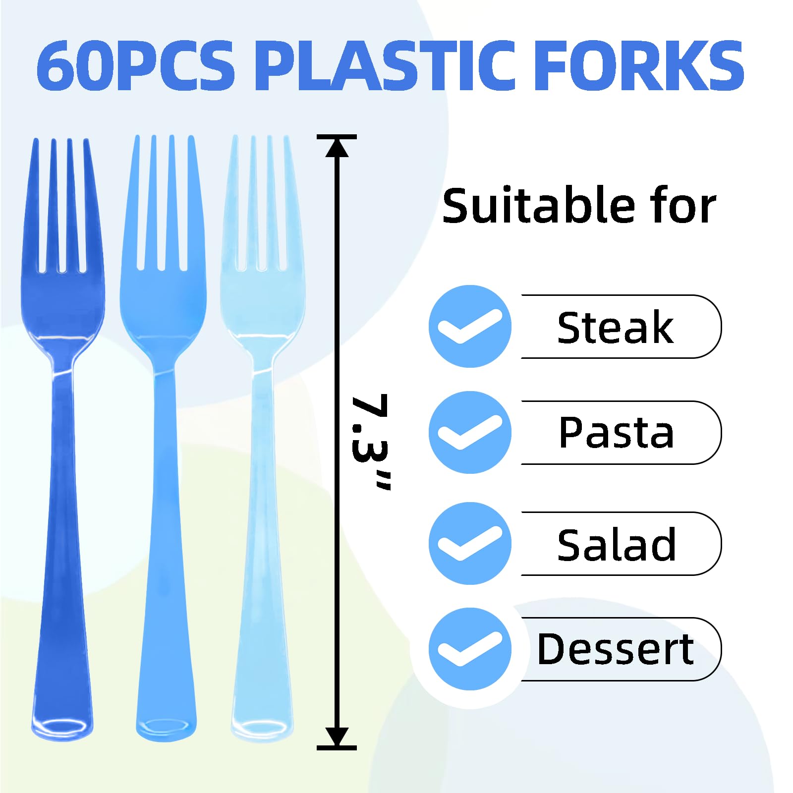 【Sufficient Quantity】:This set includes 20 pieces each of three different shades of blue cutlery, totaling 60 pieces—so you'll never have to worry about running short. Blue plastic silverware forks effortlessly handles everything from main courses and desserts to salads, Offering multiple different color options, they are sure to match your decor.