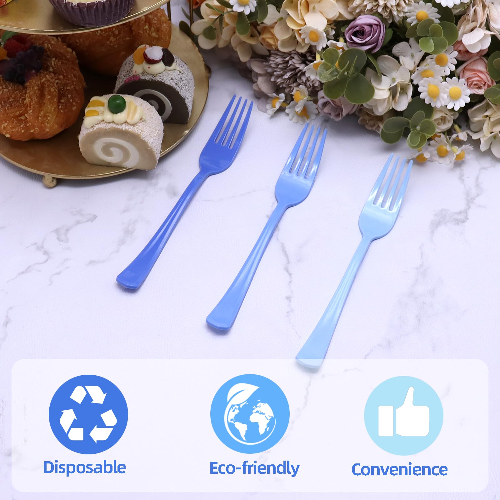 【Convenient and Reusable】The blue plastic forks are disposable and can easily be thrown away after the party, save the trouble of cleaning, especially suitable for busy of life, so that every dinner time has become easy and pleasant. Of course, if you want to continue using the blue forks, simply wash it in soapy water to restore its lustre and get it ready for your next party.