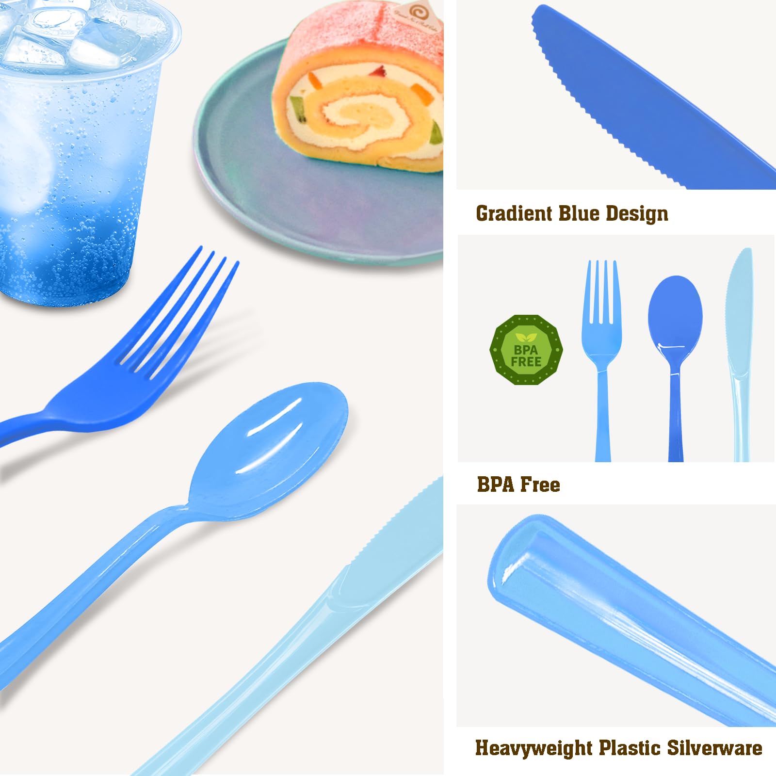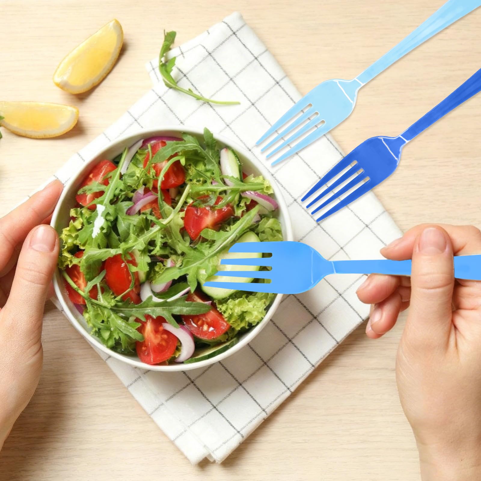 【Gradient Color Aesthetics】: This blue plastic forks features a gradient design that transitions from light to dark shades, adding artistic flair and vibrancy to mealtime. Whether for everyday dining or special occasions like parties, it becomes a standout piece on the table, elevating the dining experience with visual appeal.