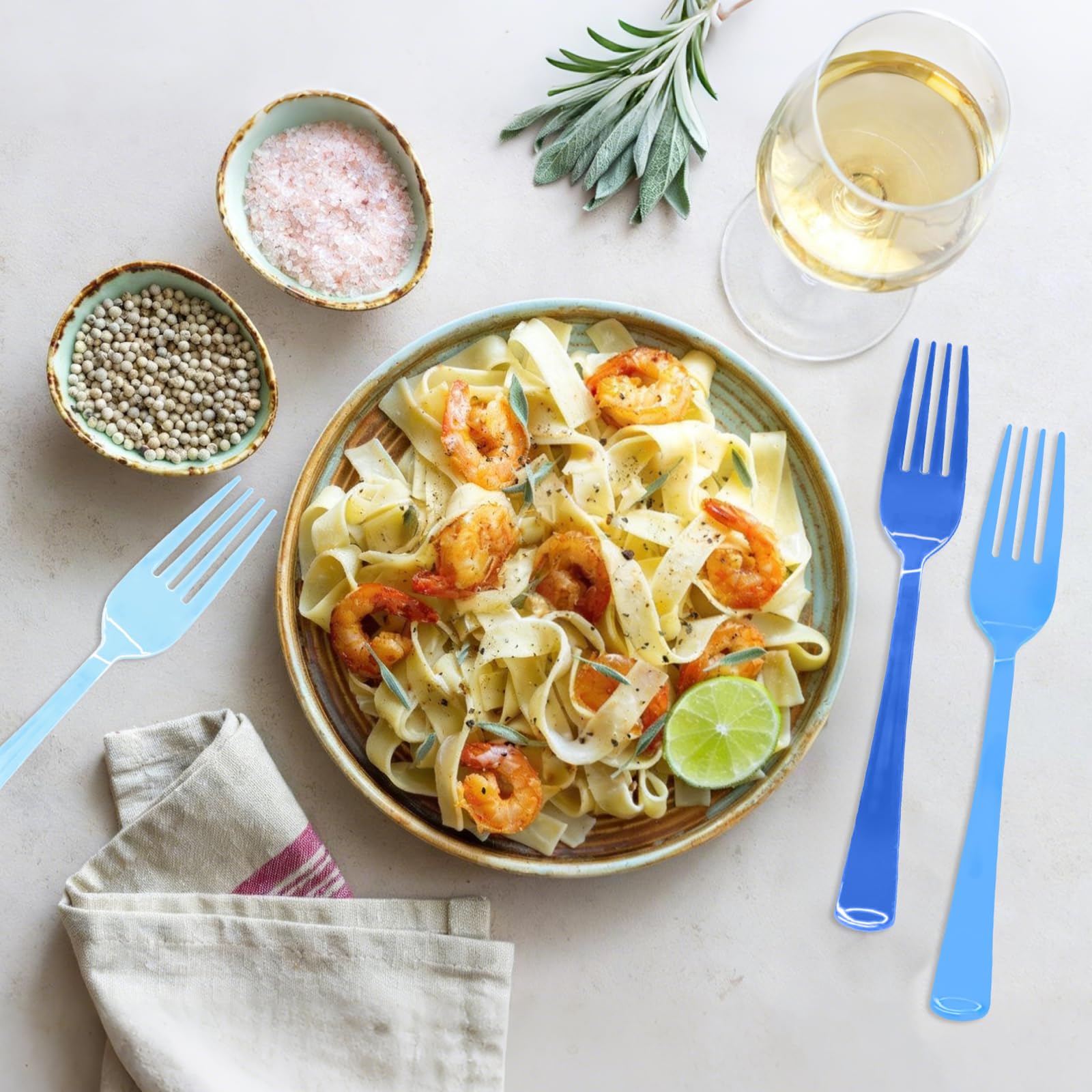 【 Applicable Occasions 】 : This blue plastic forks can be widely used in birthday parties, wedding, baby shower, bridal shower, outdoor picnics, family dinners, festival banquets and other theme gatherings, adding bright colors and enhancing your dining table environment.