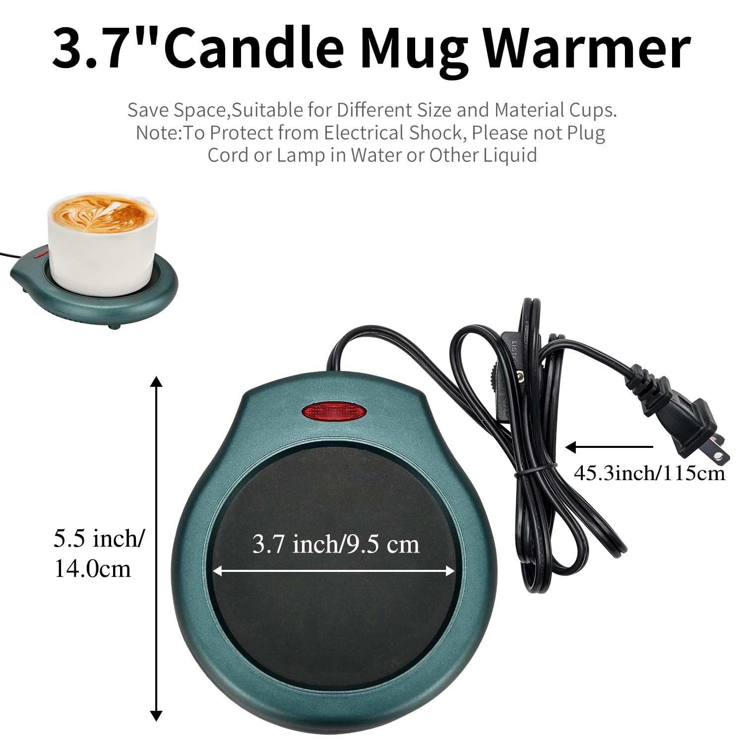 【Portable,Lightweight & Multiple Uses】:3.5 inch diameter,weighs only 0.33 lbs.fit in home,kitchen and office to heat coffee,tea,milk,soup,cocoa, wax cubes and candles.(Note:It is recommended to use flat cups and containers for more uniform heating)