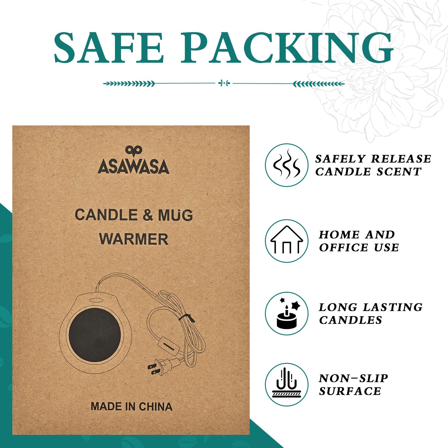 【Enjoy Fragrance and Warmth】:ASAWASA WAX Mleter is made of high quality plastic.It has 17w power,The maximum temperature of the surface iron sheet can reach 130-150 ℃. You can put the candle jar on the heating plate, turn on the switch, It usually takes 2-4 hours to melt the candle jar. If you want to smell the fragrance immediately, it is recommended to light the candle jar and melt it. Then, after the candle is blown out, place it in a heat preservation plate to heat it.