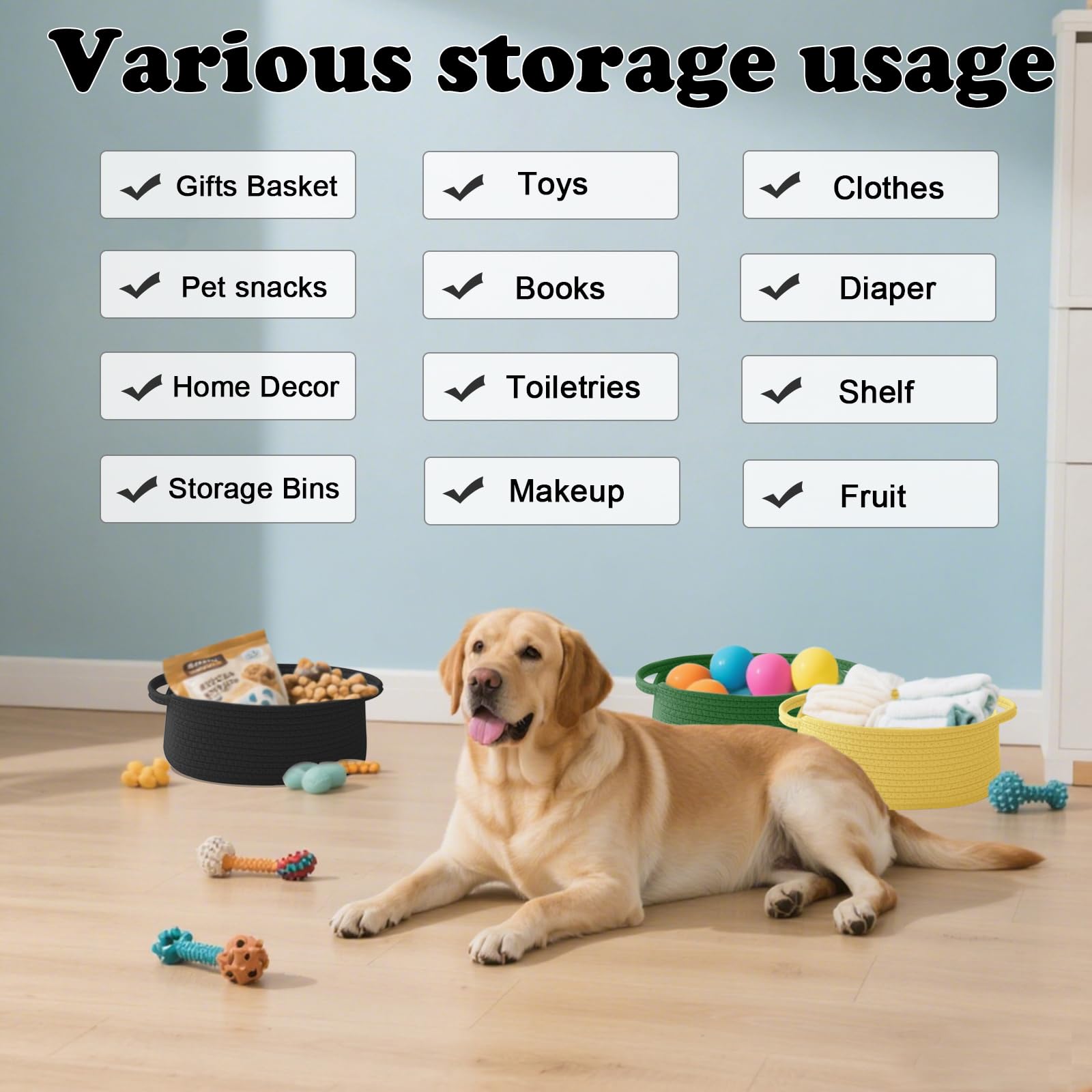 【Multi-Purpose Storage】Woven baskets for storage,bathroom organization, shelf styling,storage basket for organizing snacks, dog cat, magazine, shoes, remotes, books, towels, toiletries, keys and more.Widely used in living room,bedrooms,bathrooms,kids room,and Kitchen