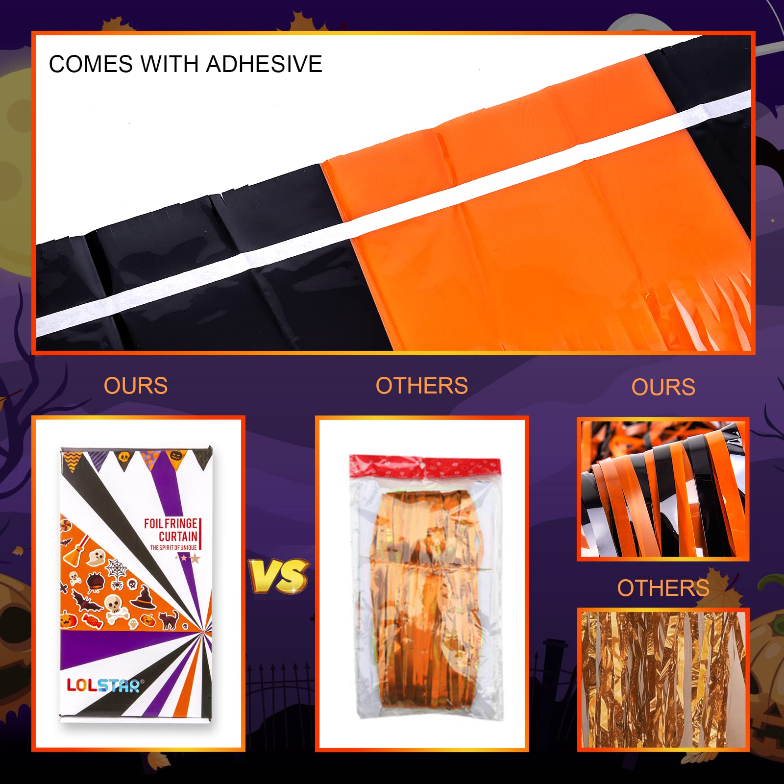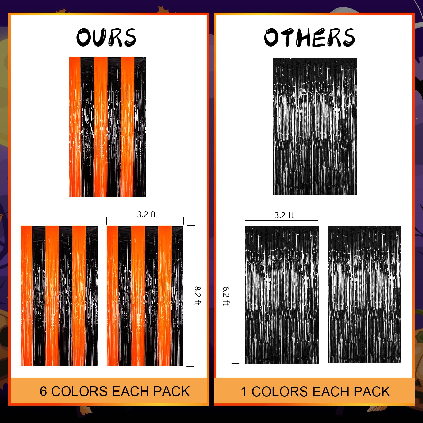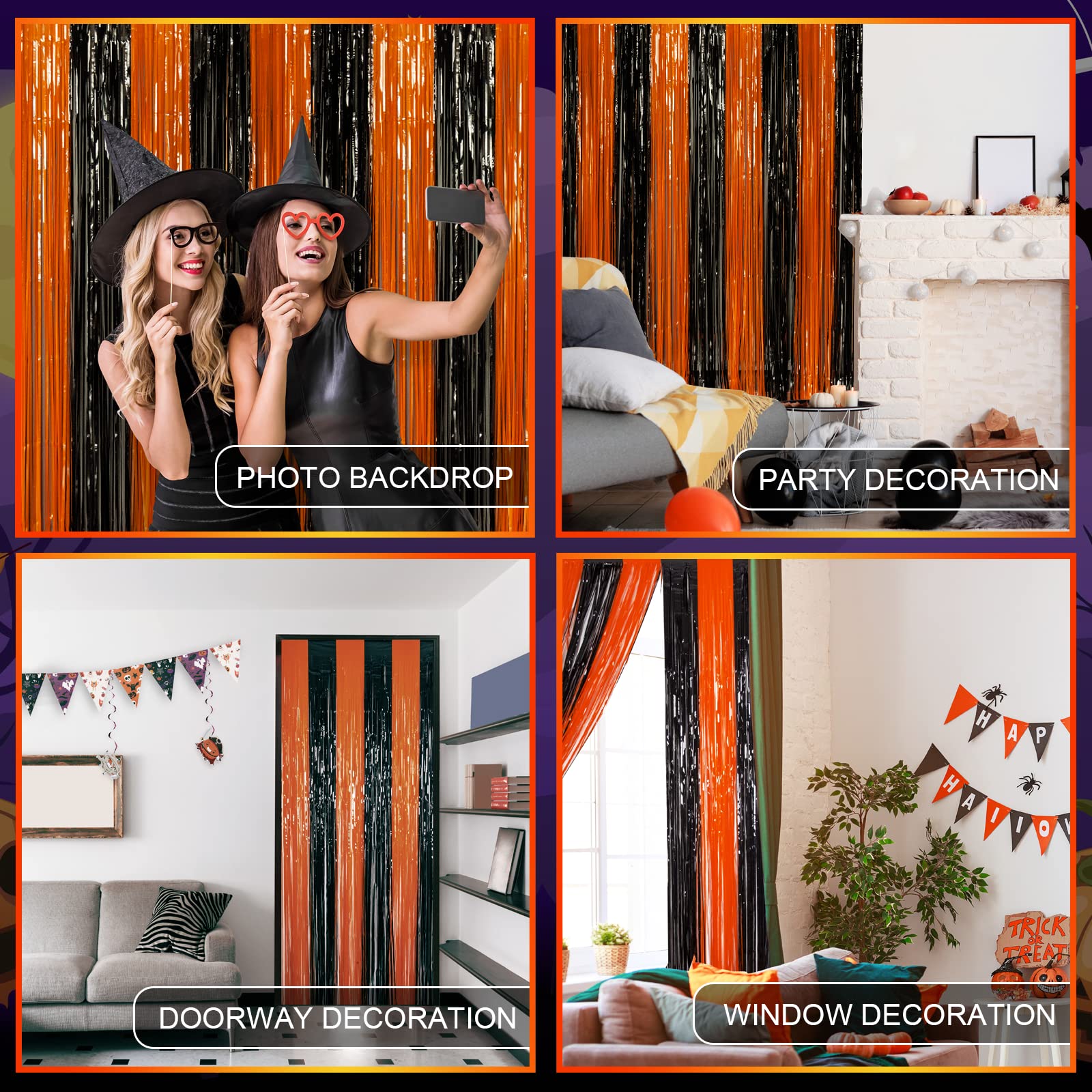 🎃【 WIDELY APPLICATIONS 】: These black and orange foil fringe curtain backdrops are a wonderful finishing touch for any party such as a HALLOWEEN carnival party, Thanksgiving party, birthday party, anniversary party, wedding party, engagement party, graduation party decorations, they are also suitable for photo backdrop, stage background, disco, baby shower, bridal shower, etc.