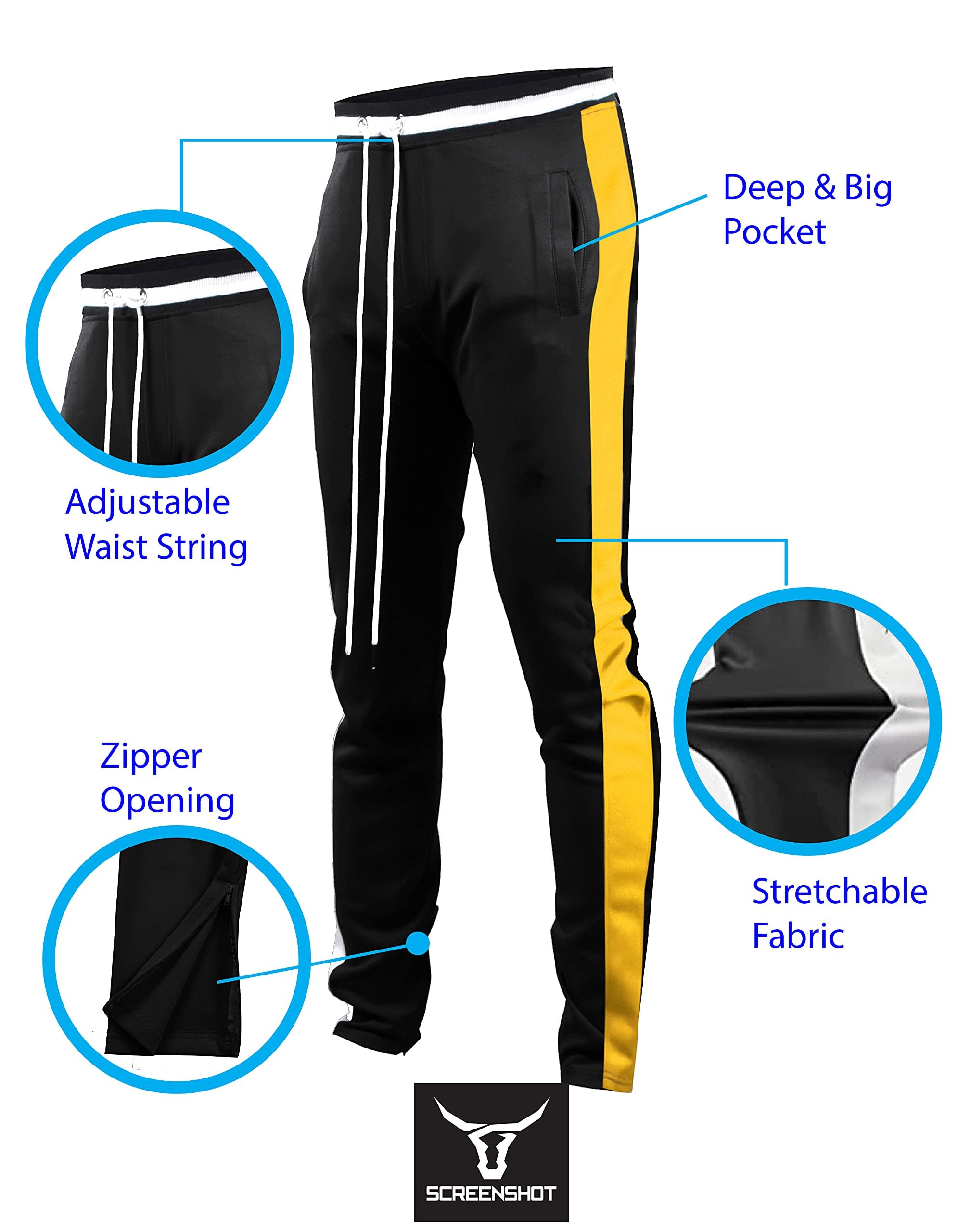 Athletic Slim Design Track Pants: Urban inspired track set instantly takes your style from bland to bold. With several styles and colors to match your closet for a modern and effortless fashion, these tracks will feel and look great