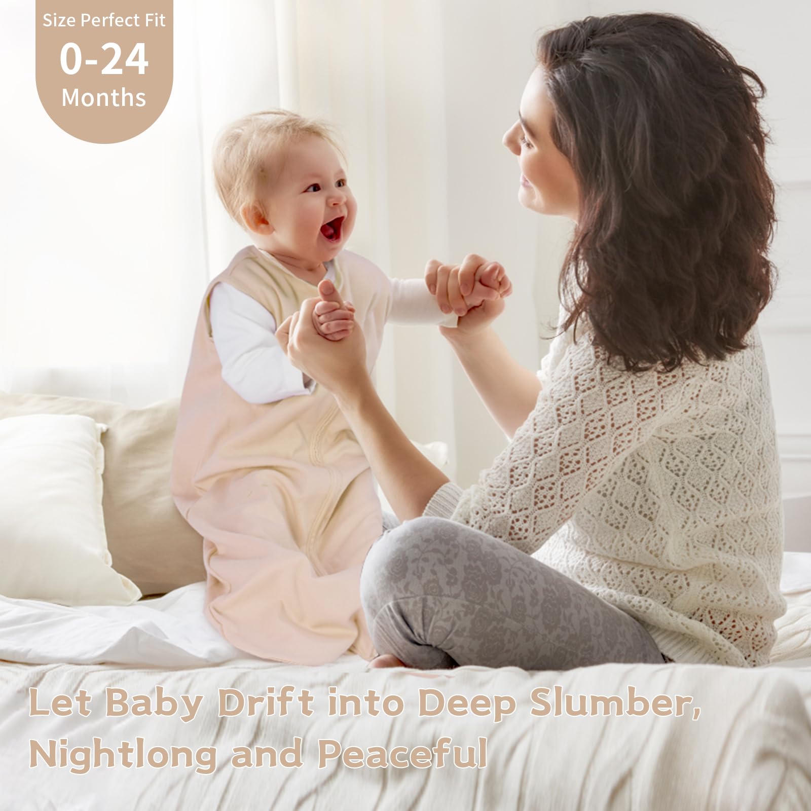 Gentle and Comfy:Wrrernsin sleeping sack is crafted from 100% pure cotton fabric, soft and skin-friendly, with exceptional breathability to create a comfy sleeping space for babies. Meeting the safety standards of the US Consumer Product Safety Commission (CPSC), it ensures worry-free use for little ones. The 0.5 tog warmth level and sleeveless design effectively reduce underarm sweating, keeping babies dry and cozy all night—perfect for year-round use