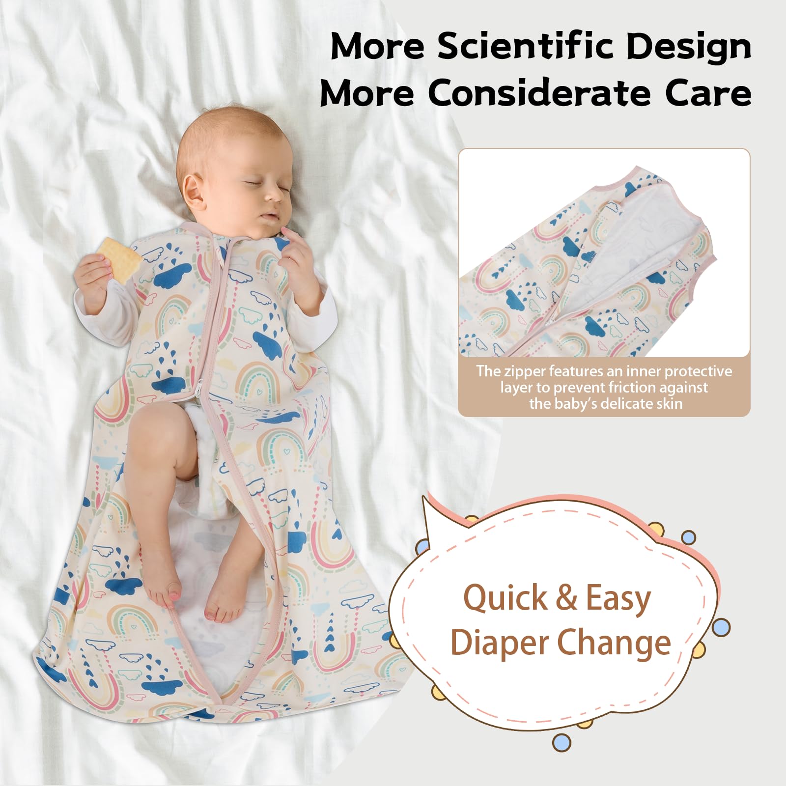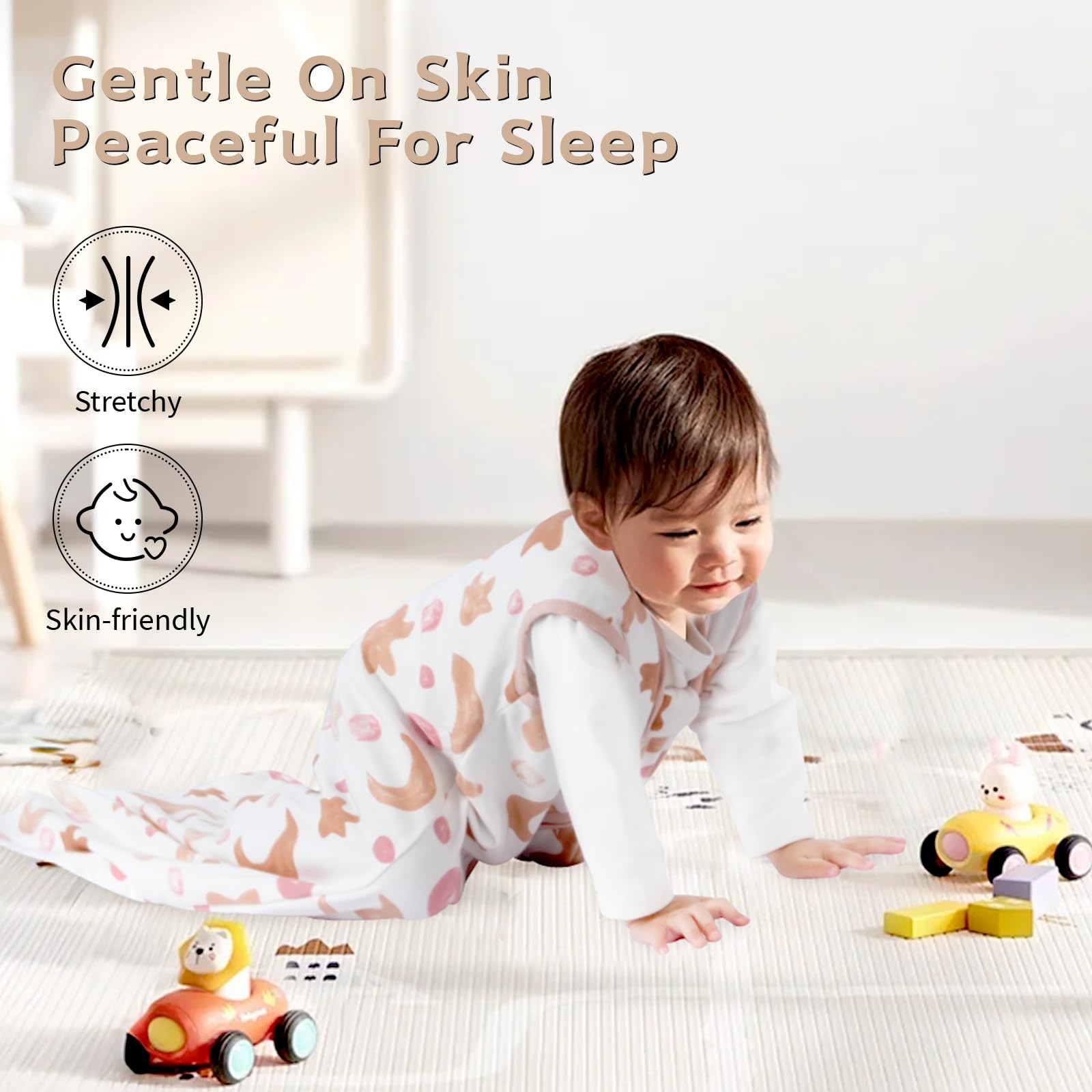 Scientific Design:The two-way zipper allows quick diaper changes without removing the sleep sack, minimizing sleep disruption. A collar zipper cover and internal protective layer prevent skin friction, while the widened bottom offers ample legroom for free movement—ideal for active newborns and toddlers in toddler sleep sacks. The design caters to every stage, from infancy to toddlerhood