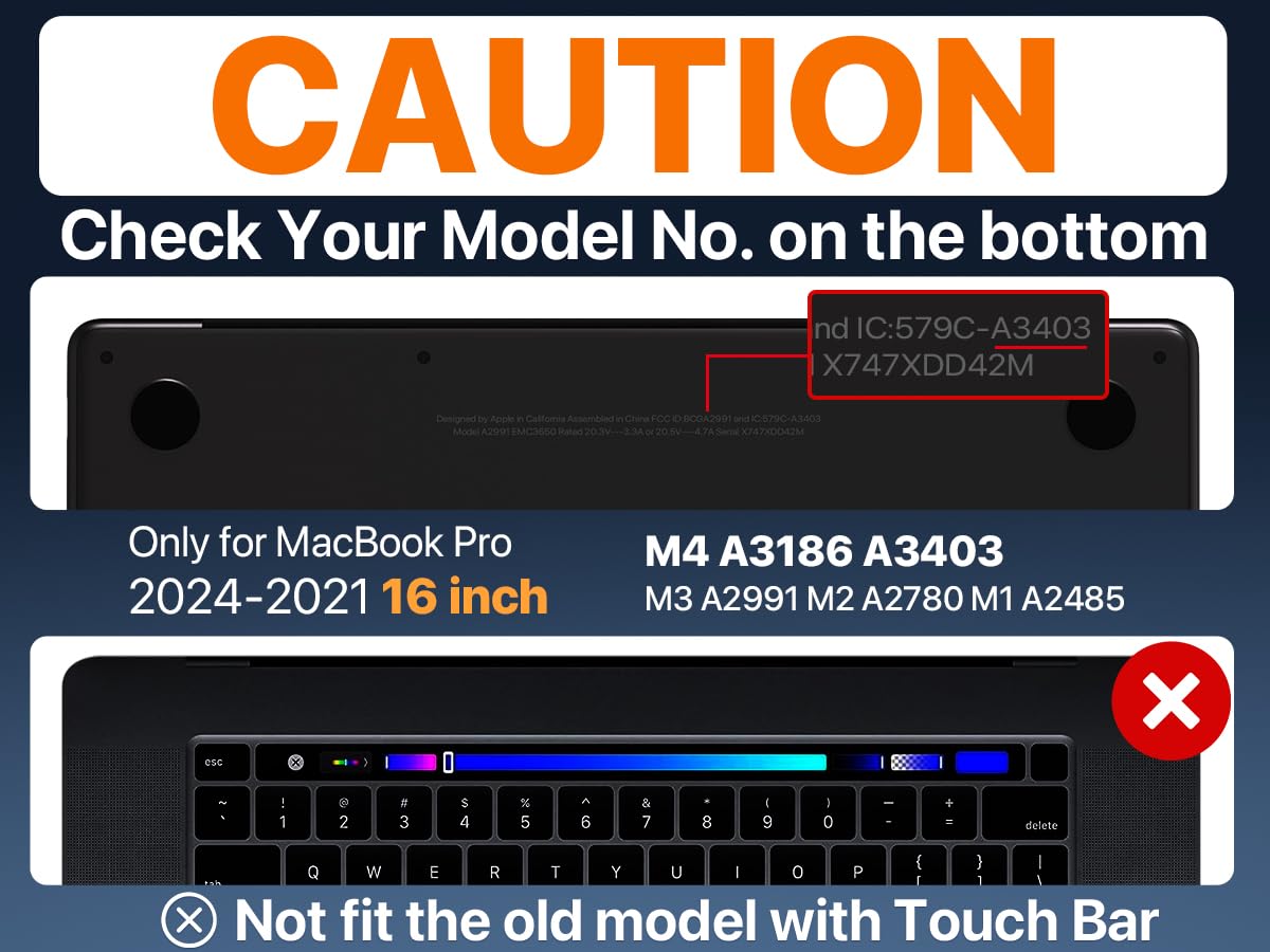 【Check Your Model】ONLY compatible with MacBook Pro 16 inch 2024-2021 Release with M4 M3 M2 M1 Pro / Max Chip (Models: A3186 / A3403 / A2991 / A2780 / A2485). Not fit the old model in 2019; Not fit A2141. Pls verify Model No. on the underside of MacBook before buying