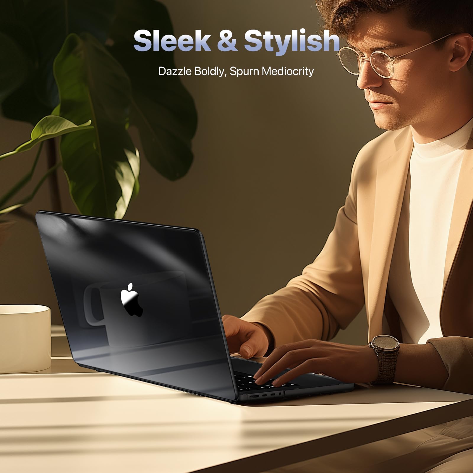 【Crystal Black, Dazzle Beauty】Crafted with premium Bayer materials, 100% pure transparency + refined through noble Black hues. This Crystal Black case allow your MacBook to take the spotlight, outshining its bare beauty