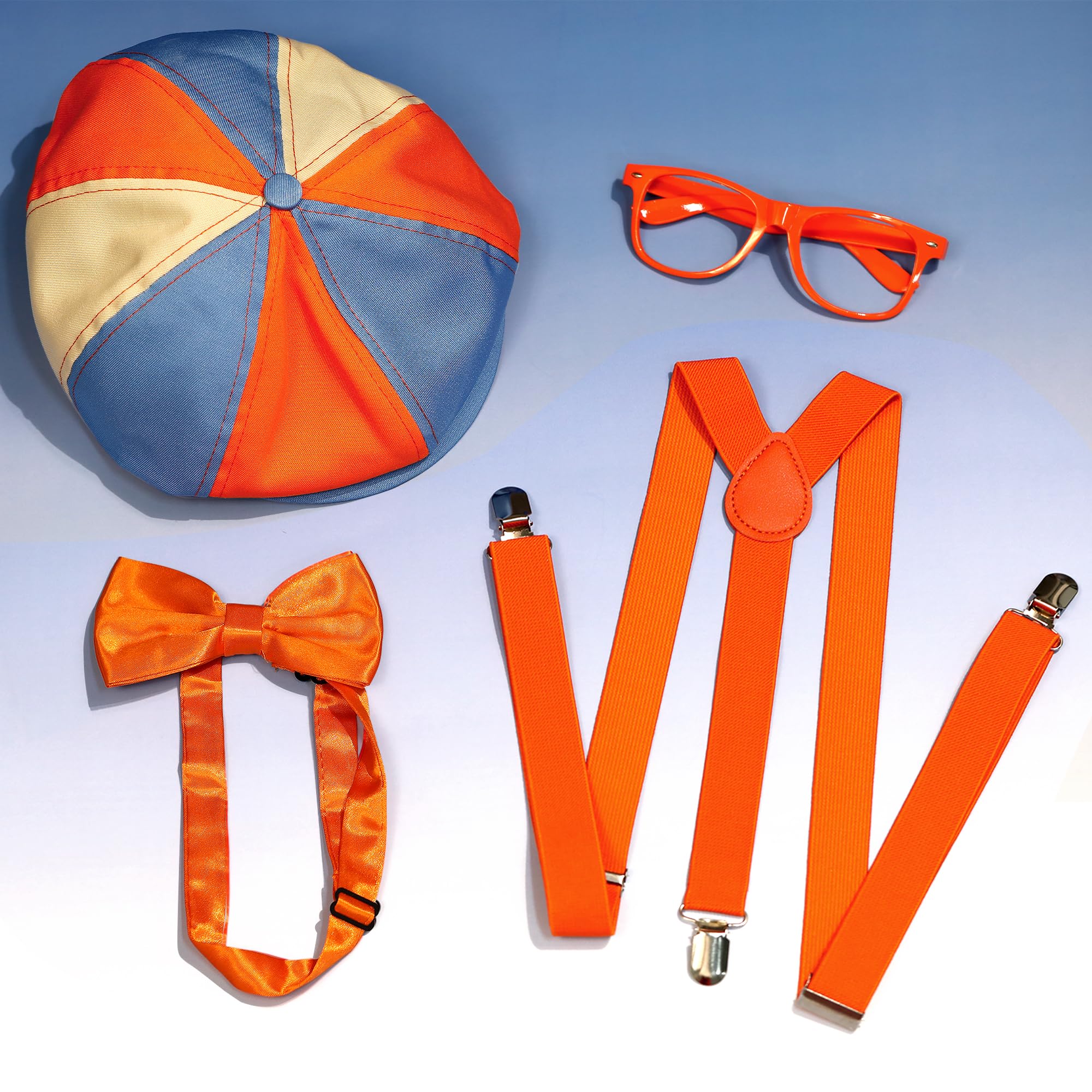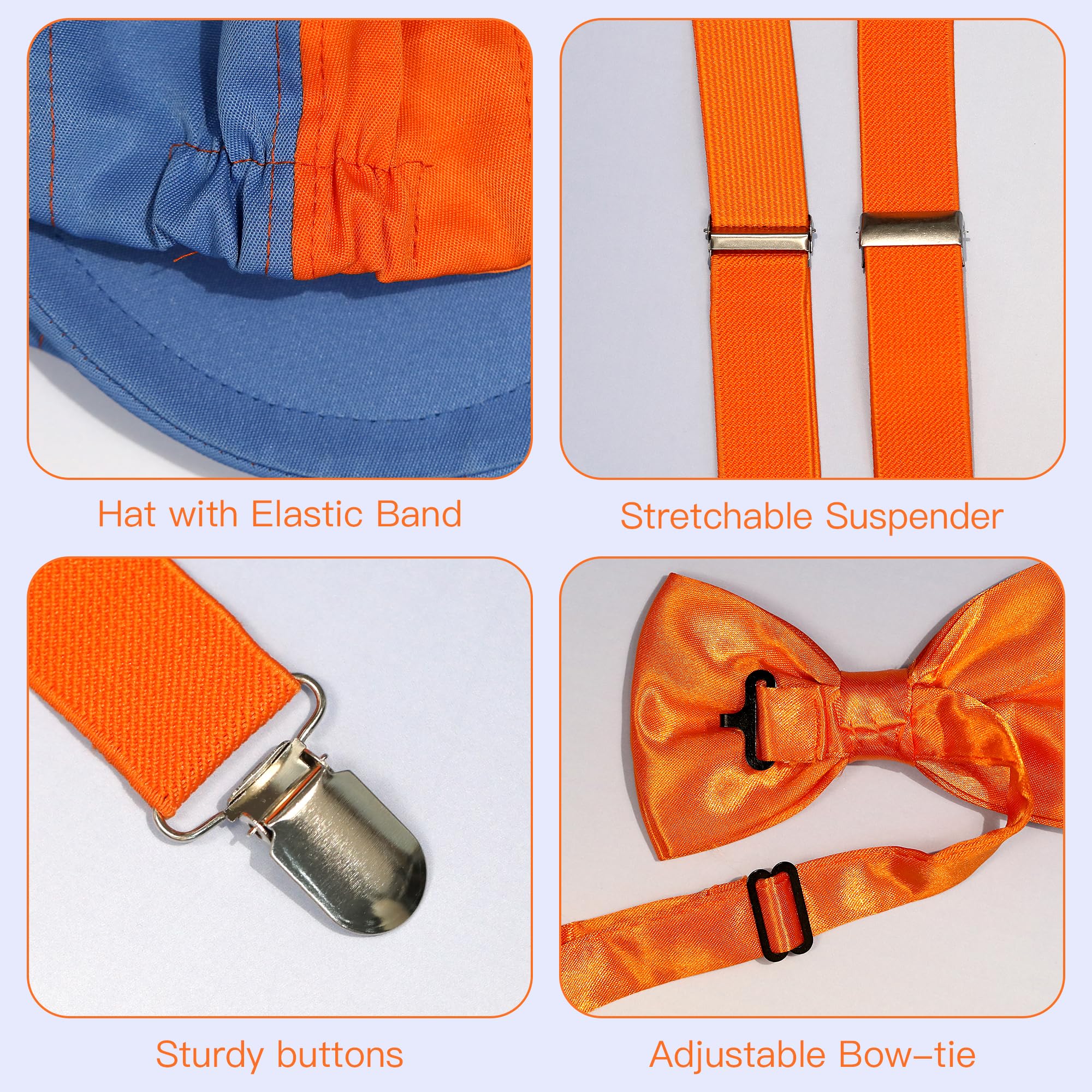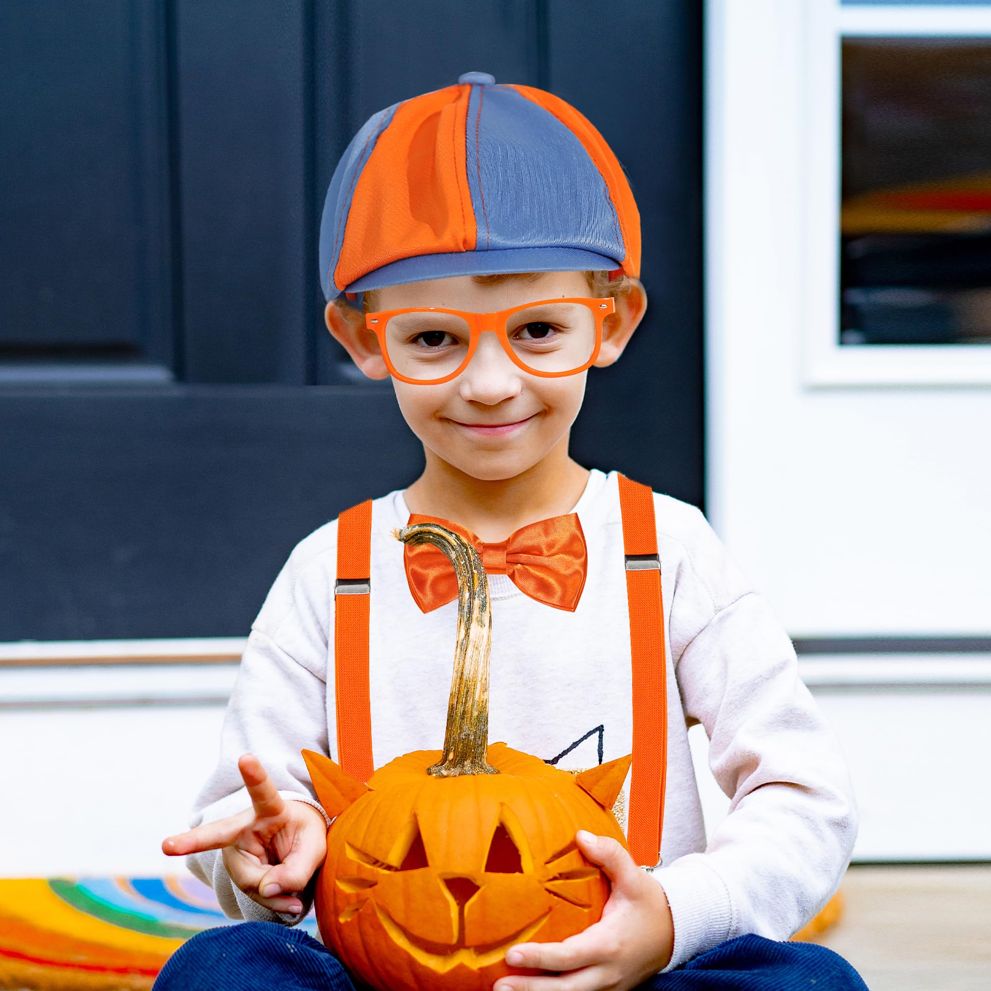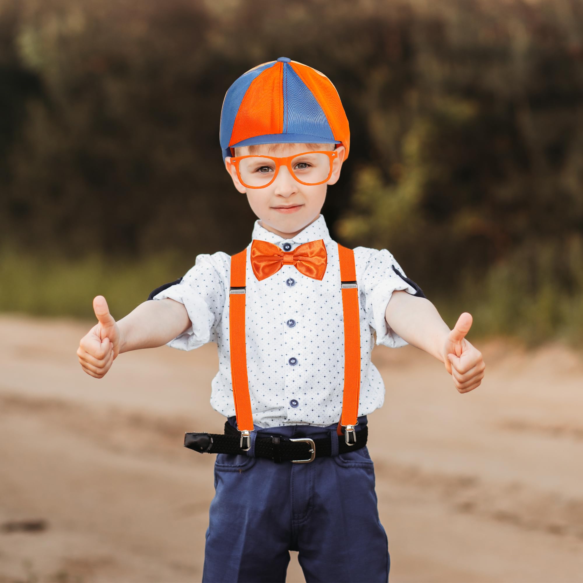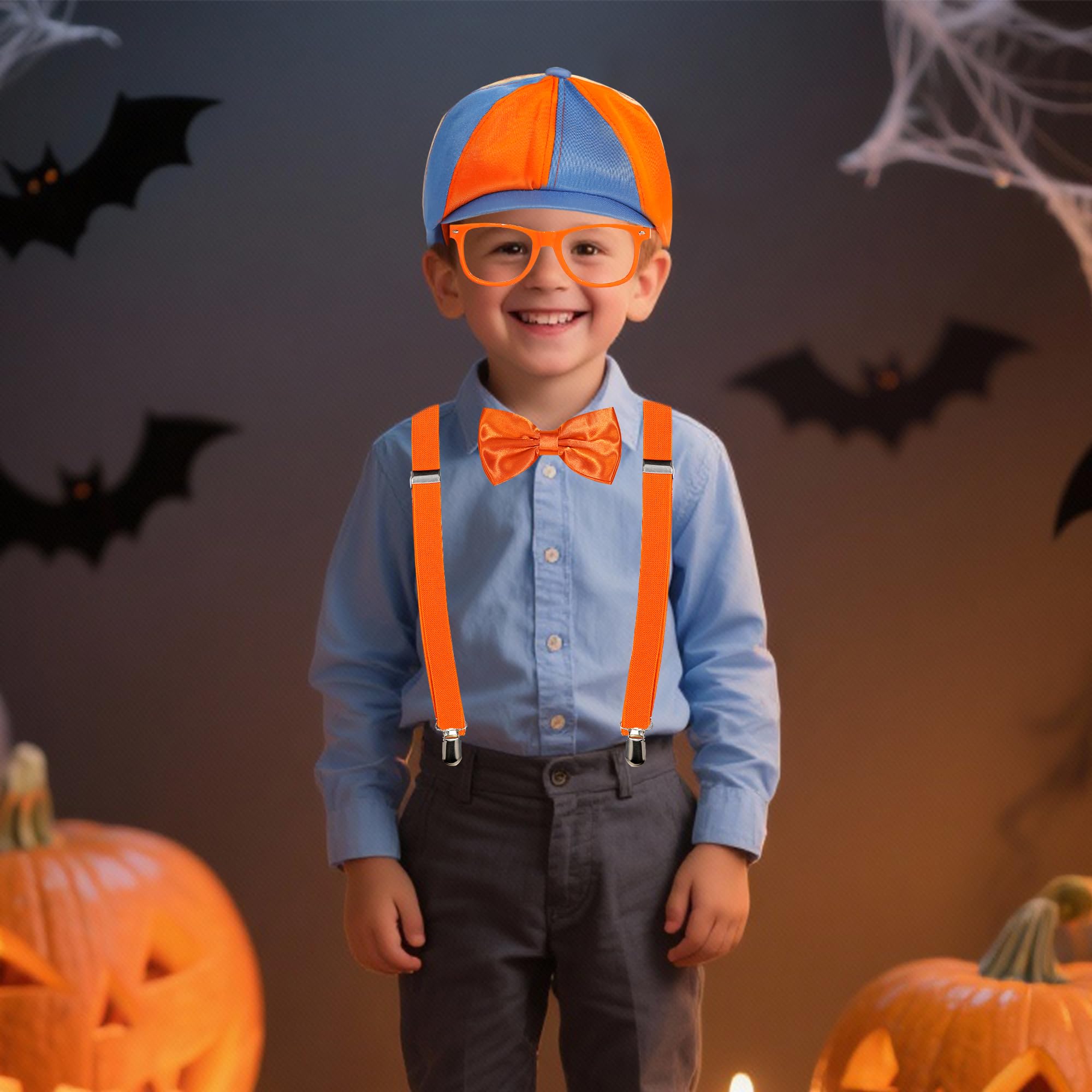 Complete Set Includes - This classic outfit for kids includes a blue and orange hat, orange suspenders, an orange bow tie, and orange glasses frames (without lenses). This kid's costume set is suitable for ages 6 years and over