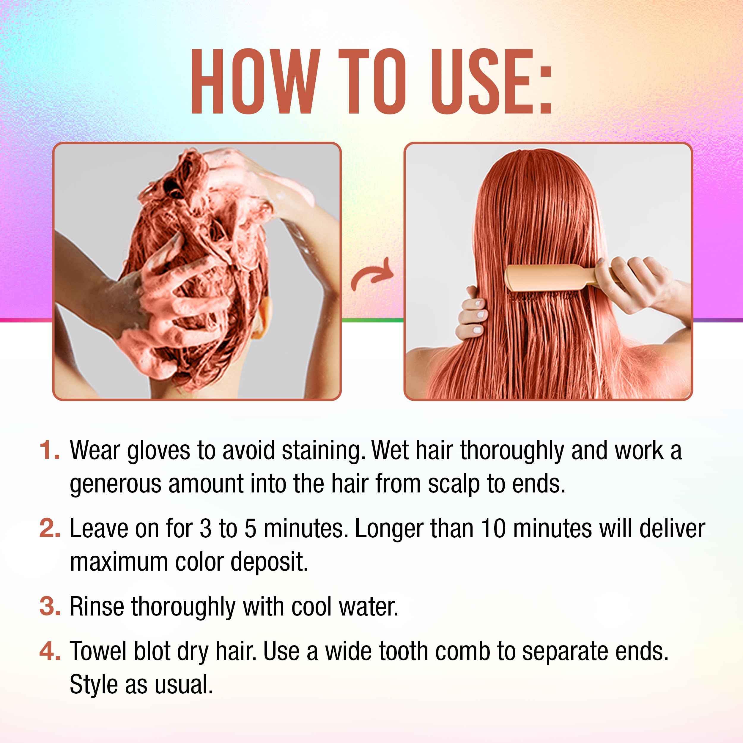 Vivacious color in ONE wash: Enjoy striking colors, vibrant shiny hair in every wash! Leave it on for 10 to 15 minutes for a more amplified effect, or 2 to 5 minutes for a less intense look, or rinse immediately for a subtle touch-up! Can be used everyday or when needed.