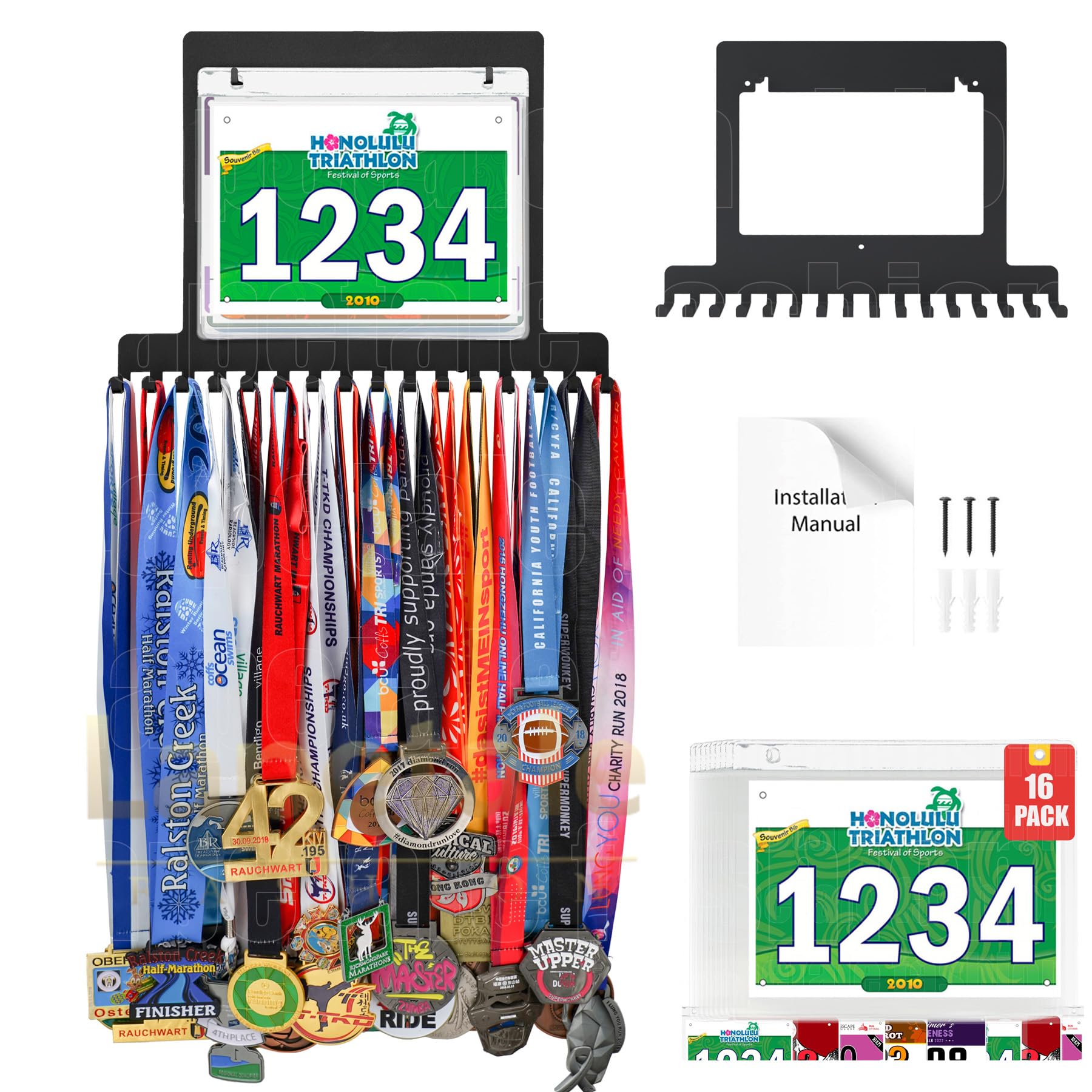 ✨【NEEDS MORE BIB BAGS】We offer 40pcs Bib Bags of bib race medal holder wall hanger and 60pcs Bib Bags of bib marathon medal display with for more options, if needs, please Click on detail page to find the bib runner medal hanger display.