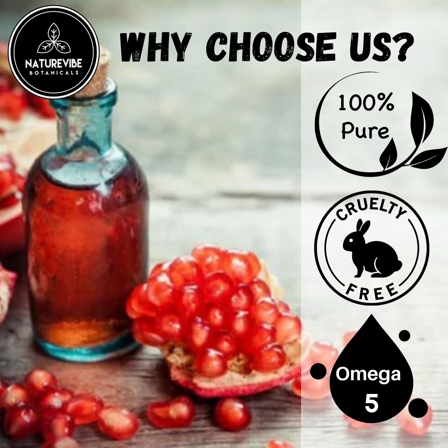 ✅Our Pomegranate Seed Oil is cold pressed and free of any artificial fillers.