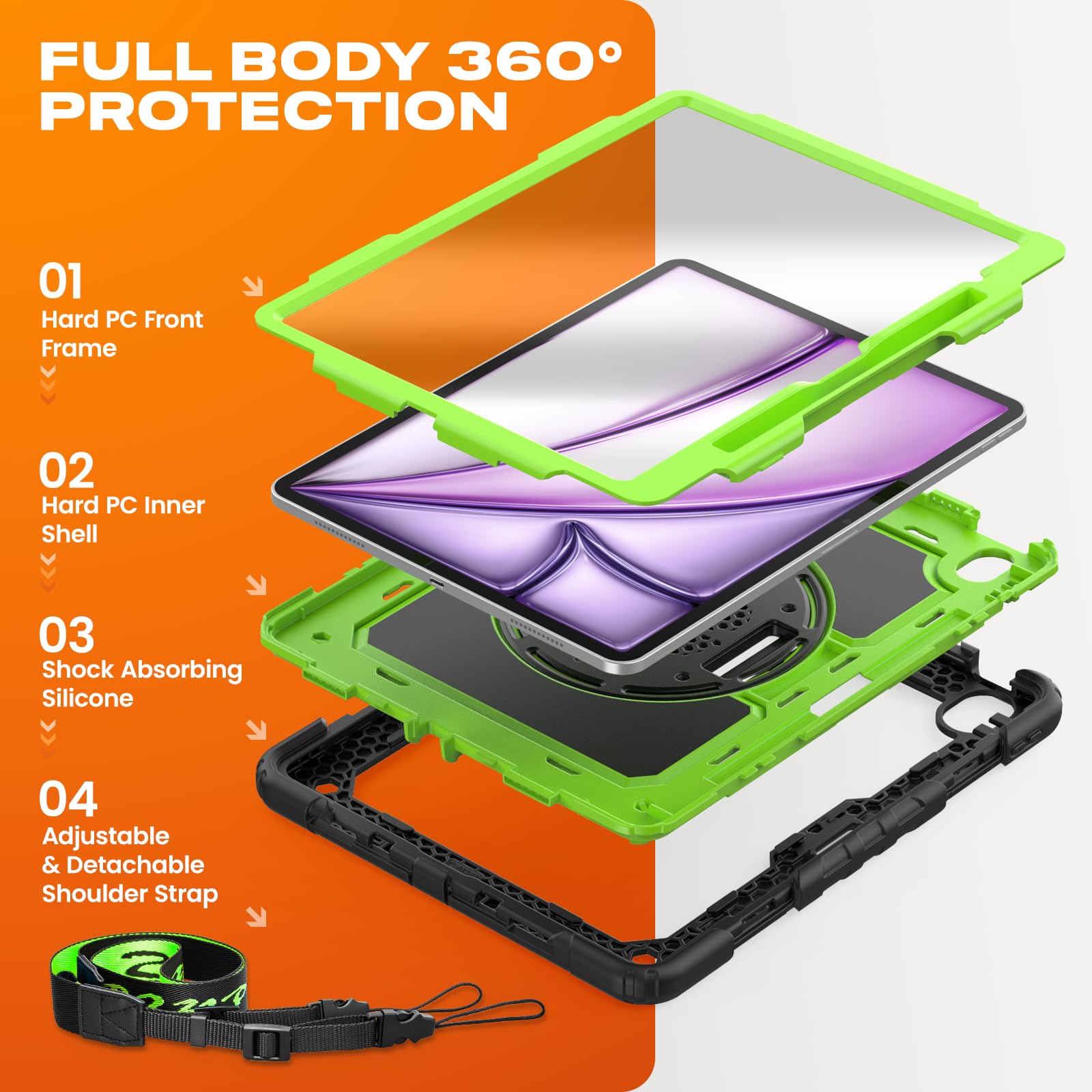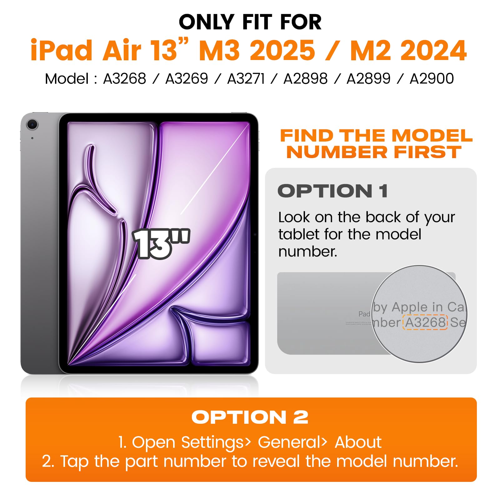 [Compatibility] Shockproof Case only for iPad Air 13 inch M4 2026/ M3 2025/ M2 2024 (13-inch Air 8th/7th/6th Generation), Model: A3464/ A3462/ A3461/ A3268/ A3269/ A3271/ A2898/ A2899/ A2900. Please confirm the model before purchase this case for iPad Air 13