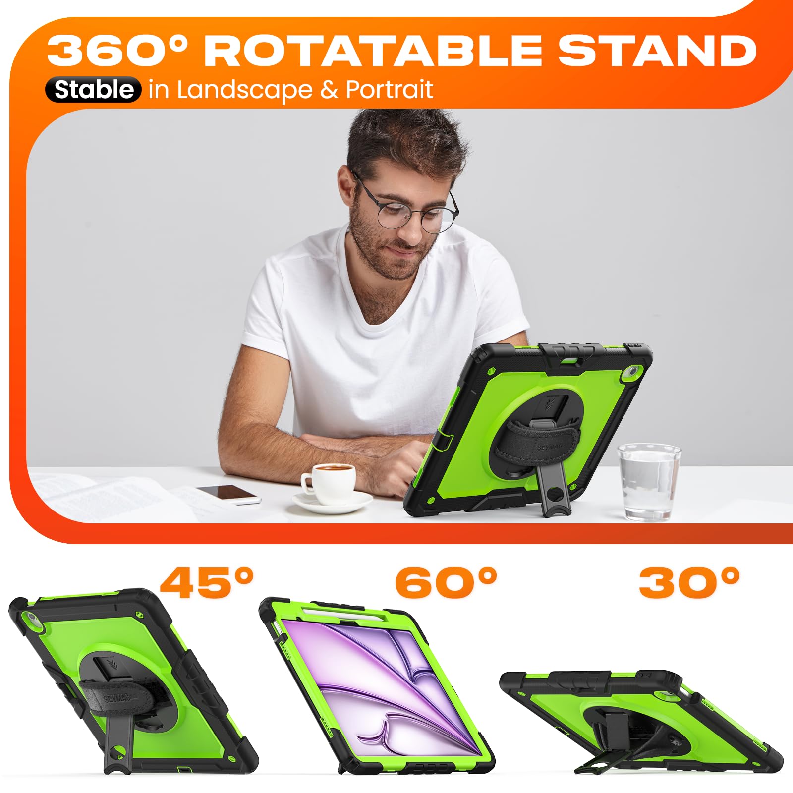 [Versatility Stand & Pencil Holder] With 360° rotating adjustable kickstand stable at multi-angles, case for iPad Air 13 inch M4 M3 M2 for viewing, typing or movie watching; With pencil holder easy storage for note-taking, case for 13-inch iPad Air case suited for classes/meetings, works or play with-kids