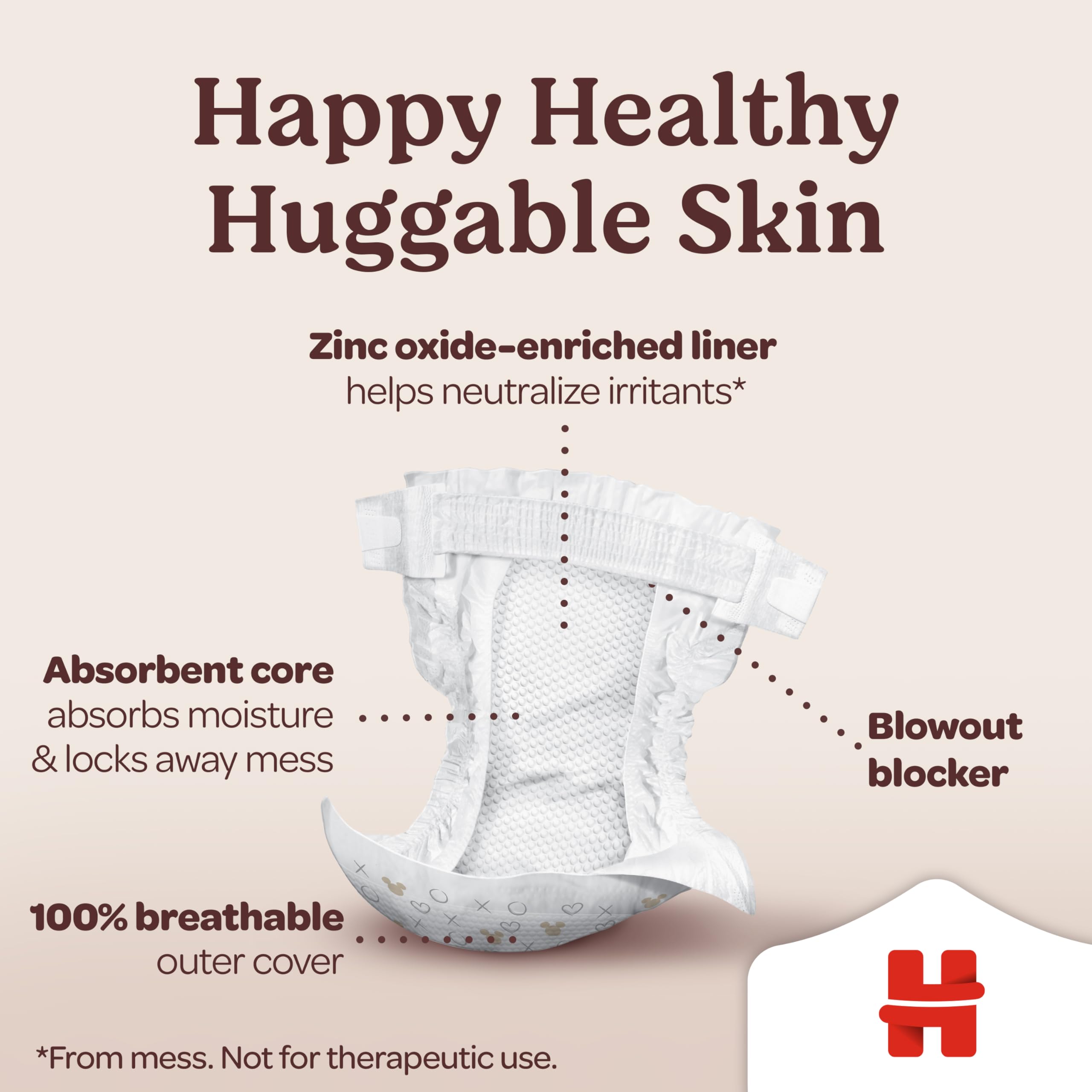 Zinc Oxide Enrichment: The liner of these fragrance-free diapers is enriched with zinc oxide to help neutralize irritants* (*from mess. Not for therapeutic use.)