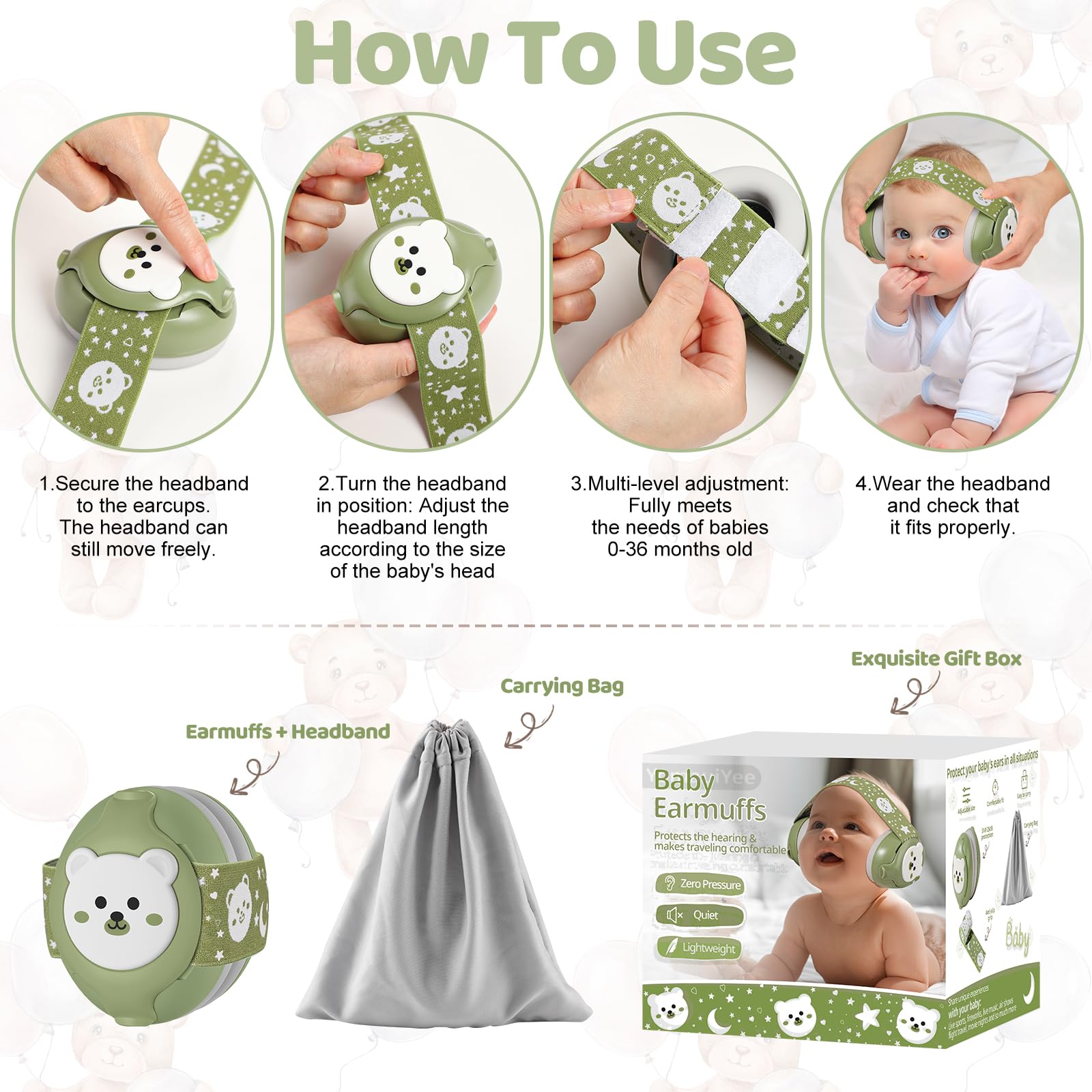 【Baby Travel Essentials】YomauiYee baby earmuffs are a three-in-one newborn product that combines noise reduction/protection/sleep, meeting the specific needs of newborn parents and providing a comprehensive solution for baby travel.Baby headphones, adjustable headband,storage bag come in a beautiful box,making them an ideal gift option for newborn babies or parents