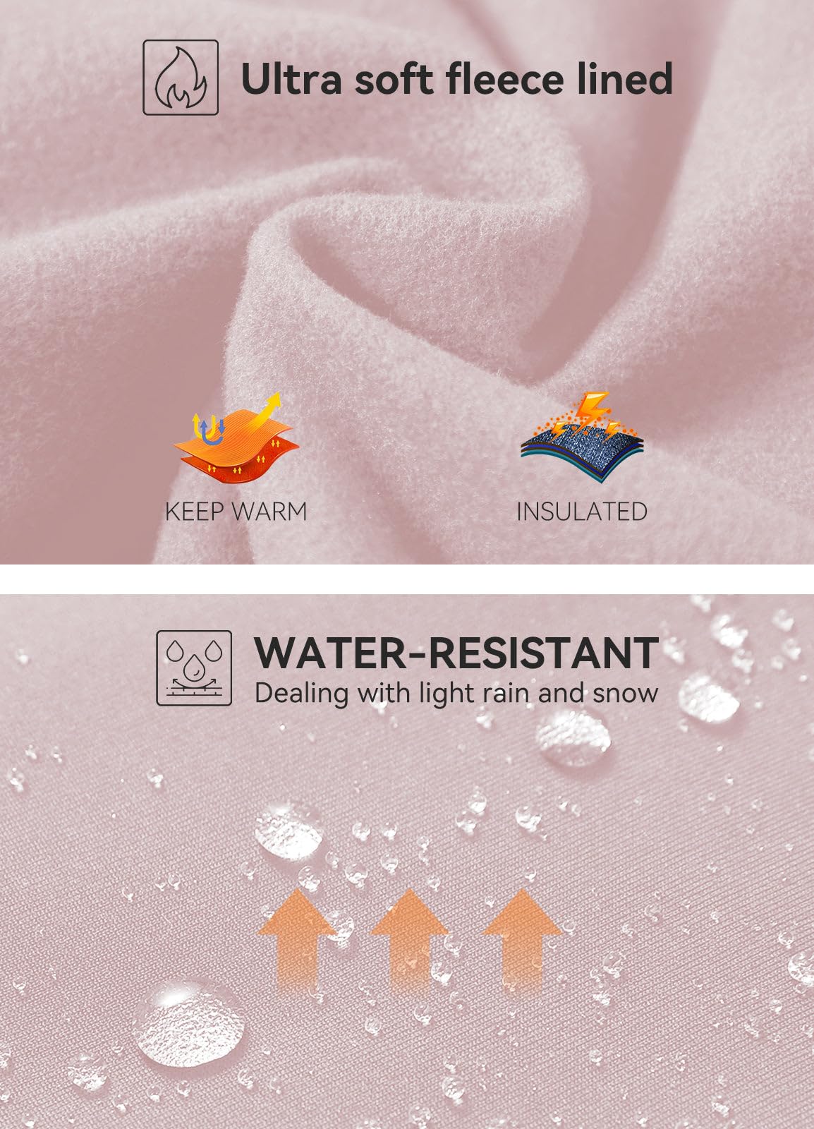 Warm & Water Resistant: The fleece lined leggings women is made of soft fleece inner layer traps heat to keep you warm & comfortable, perfect for cold days under 40°F. Water resistant fabric can handle light rain for a short time or keep dry on snowy days and provide wind protection.