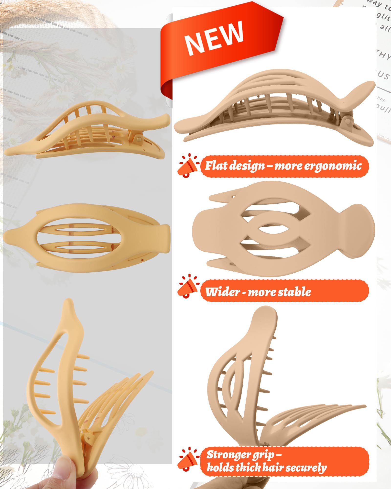 Light Design, No Burden During Activities - Ideal for yoga enthusiasts and active lifestyles, these flat claw clips are extremely lightweight and provide a secure hold without head pressure. They ensure your hair stays in place during work, exercise, or relaxation