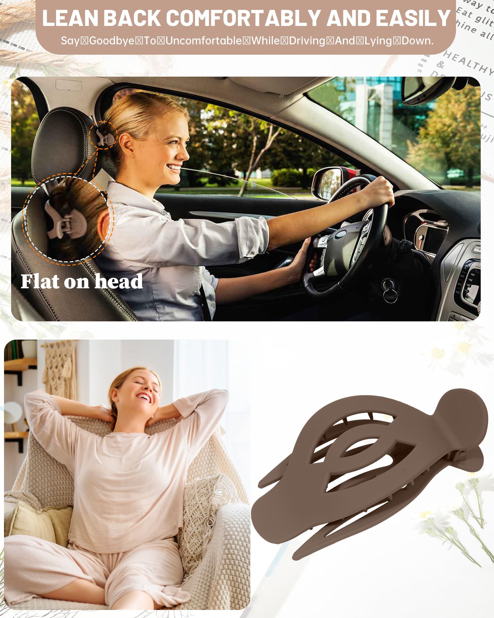Comfort for All-Day Wear - With its flat design, this flat hair clip conforms to your head for all-day comfort, prevents creases, and reduces hair tension to protect against breakage. Perfect for any activity, from driving to relaxing on a beach chair or leaning on the sofa.