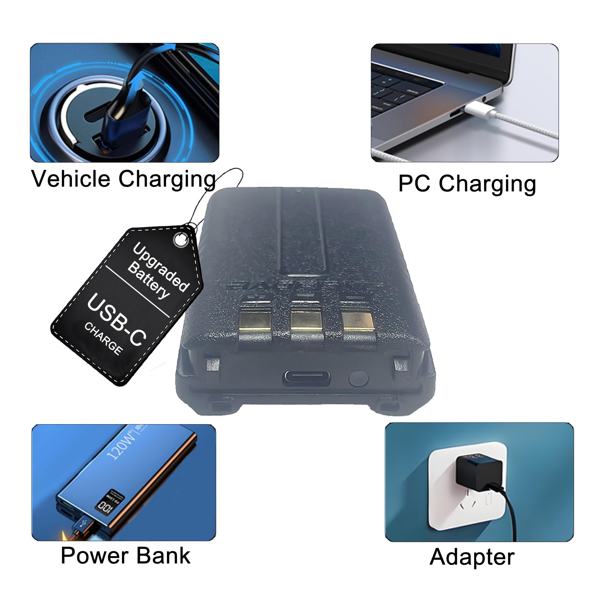 Upgraded Battery: Supporting USB-C direct charging. Charge it wherever you go: Vehicle Charging, PC Charging, Power Bank and so on.