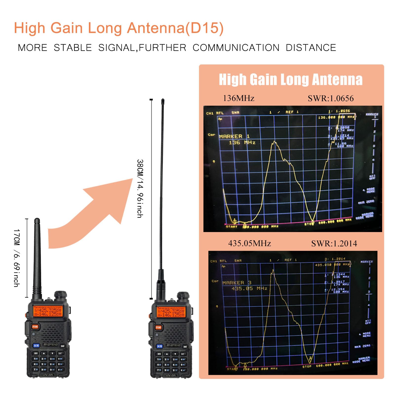 Walkie Talkies Long Range with 14.96inch High Gain Long Antenna, Upgraded Battery(support USB-C charging),Dual Display Dual Standby, Dual Band:(VHF)144-148/(UHF)420-450Mhz, 128 memory channels.