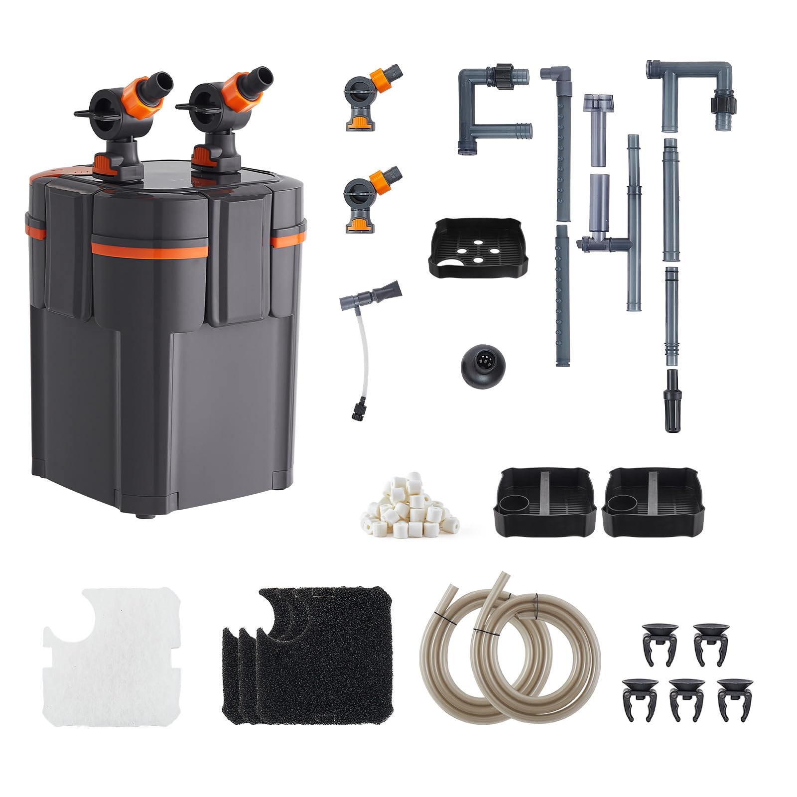 Adjustable Water Flow: With a flow control valve, the canister aquarium filter allows you to precisely control the inlet and outlet water flow. Its air release valve quickly exhausts pipe air, ensuring smooth water flow for stable aquarium operation