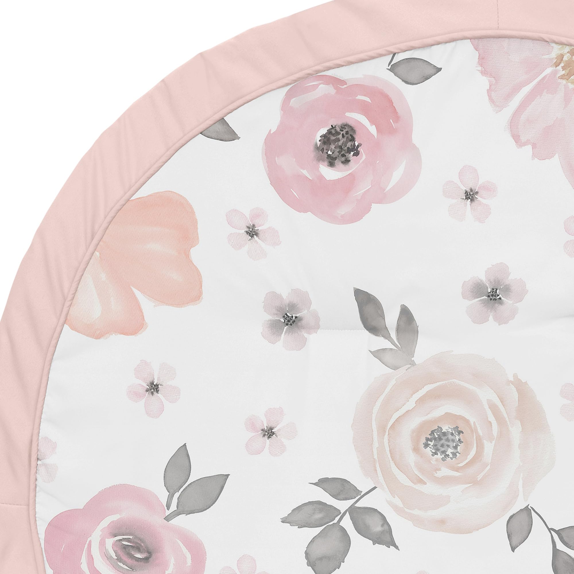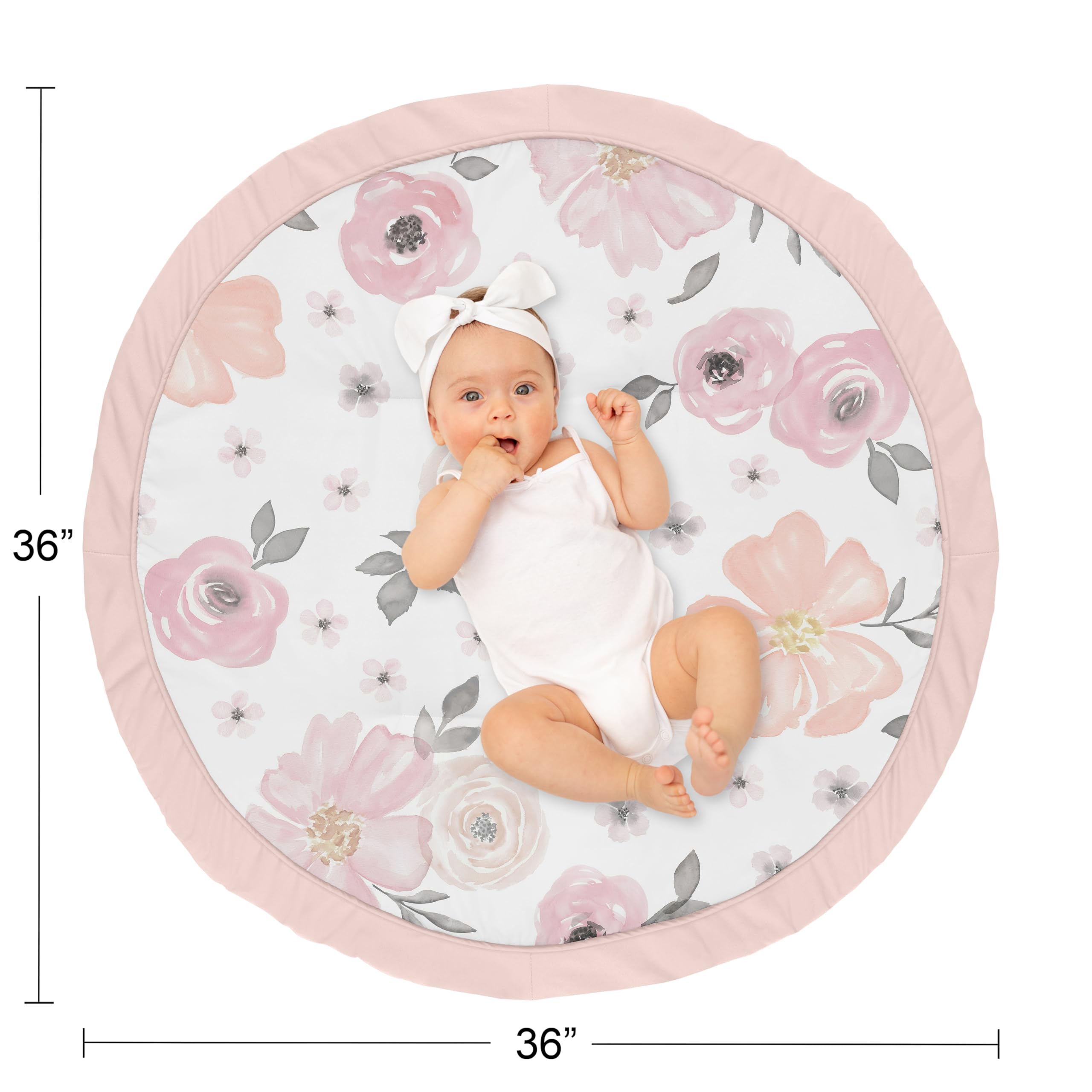 BABY ITEMS MUST HAVES: Baby Play Mat (36in. Round). Designed in the USA with moisture wicking, super soft brushed microfiber fabric. Machine washable, tumble dry low. This vibrant baby girl playmat would pair perfectly with coordinating bedding sets and match with the Blush Pink and Grey Watercolor Floral Flower Rose Floral Collection accessories to complete your newborn/infants nursery themed look.