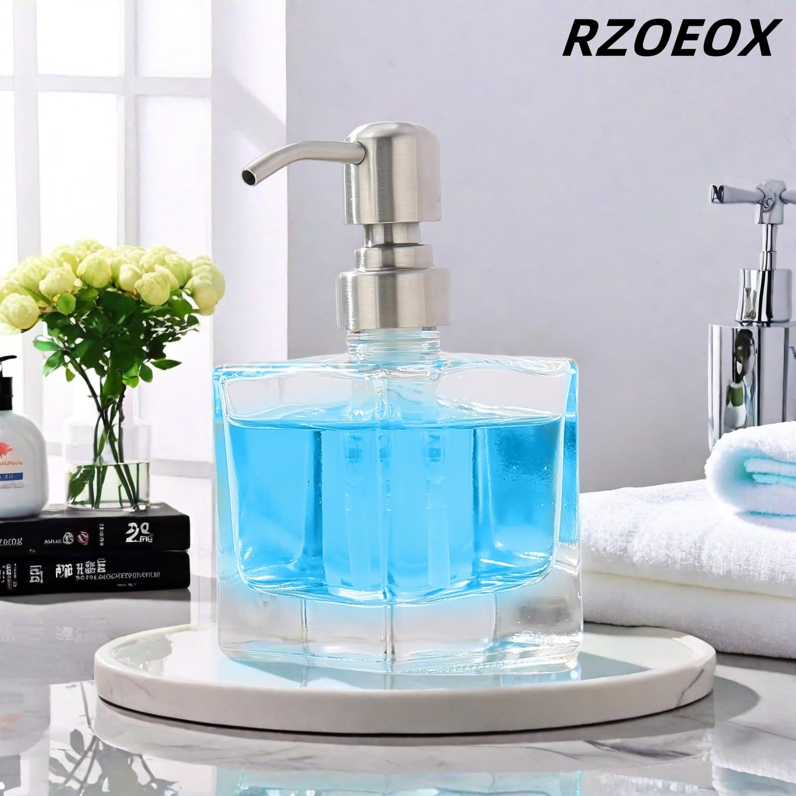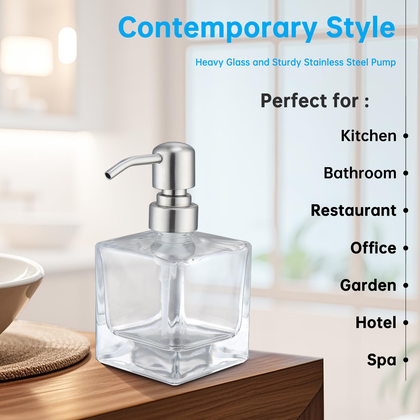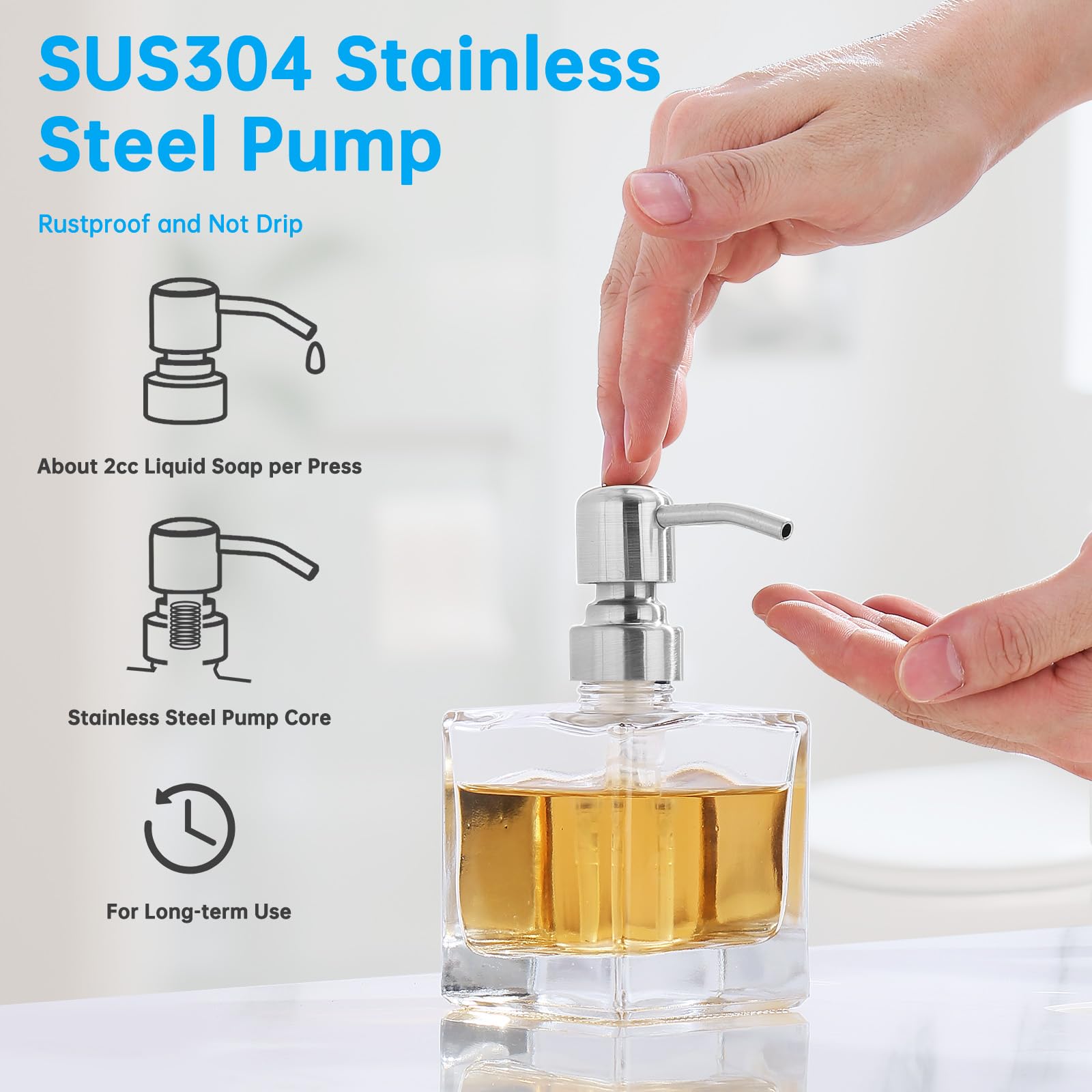 Square Soap Dispenser Countertop: Made of high quality glass, premium 304 stainless steel pump, not leaked and dripped