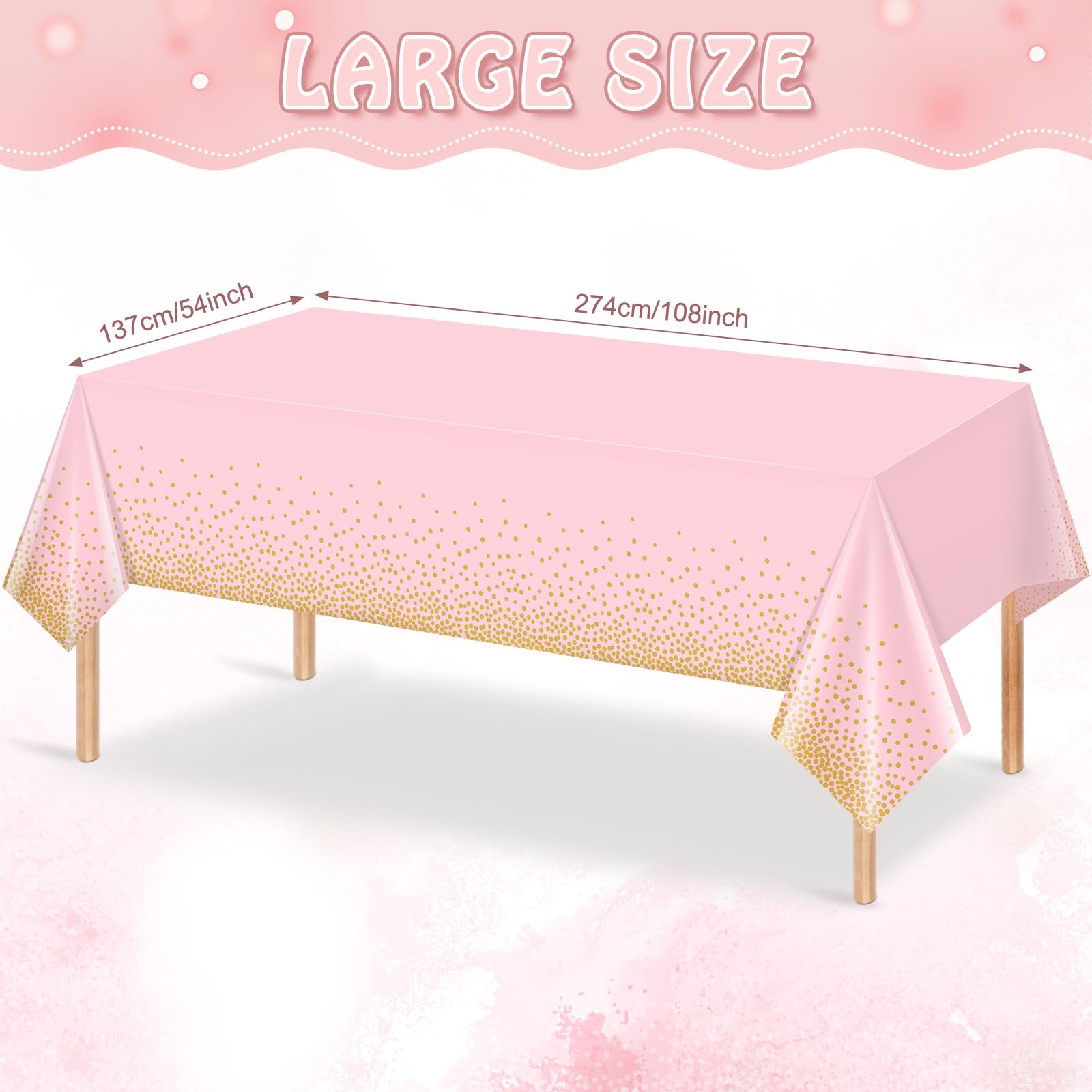 Package Includes: You will receive 1 pink and gold dot tablecloths, each pink tablecloth measures approx 54 x 108 inches, fit any rectangle table up to 8 feet in length, suitable for party decoration.