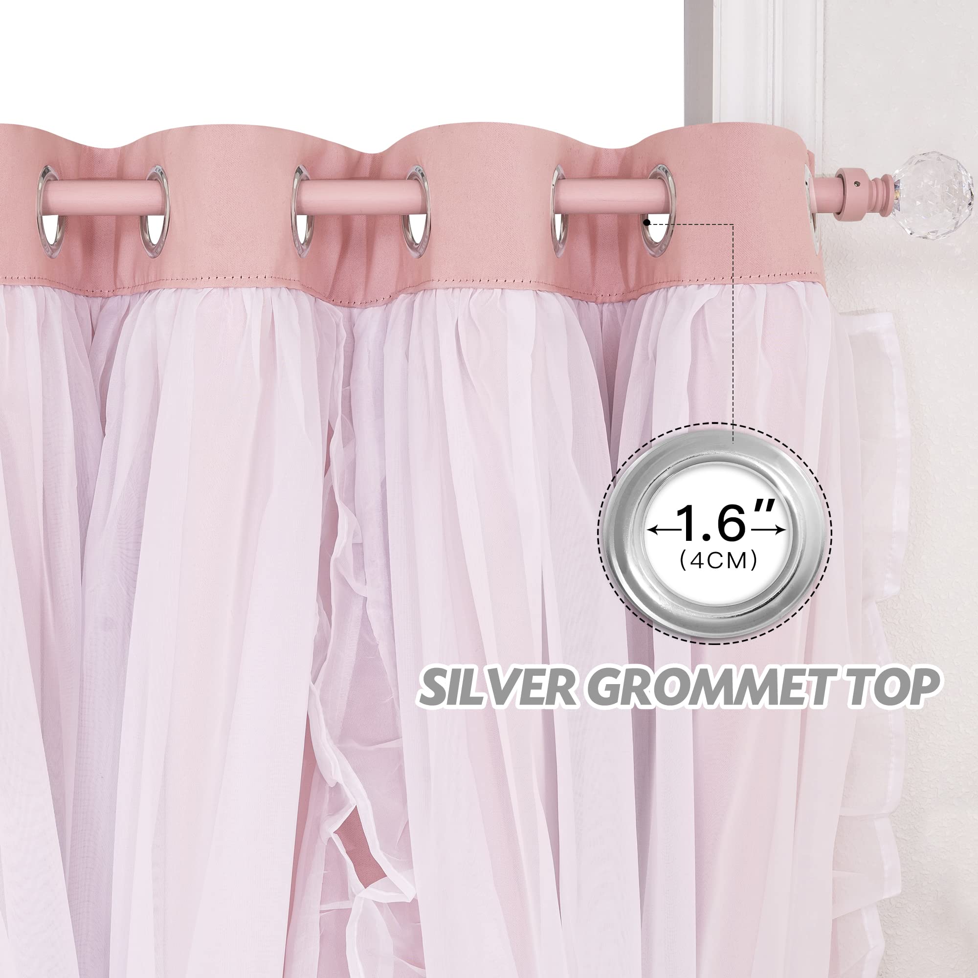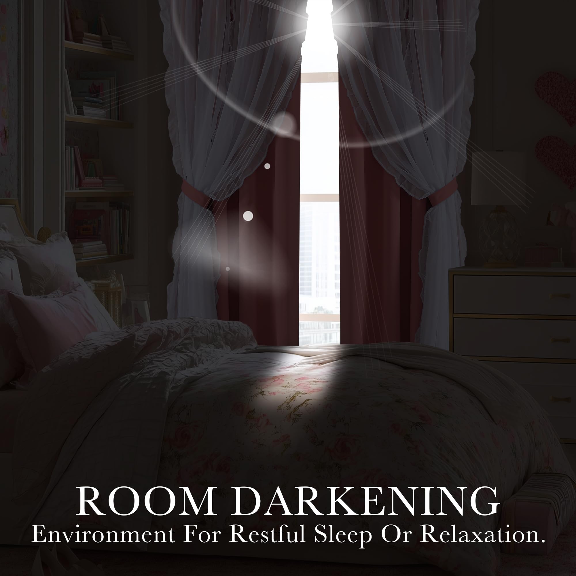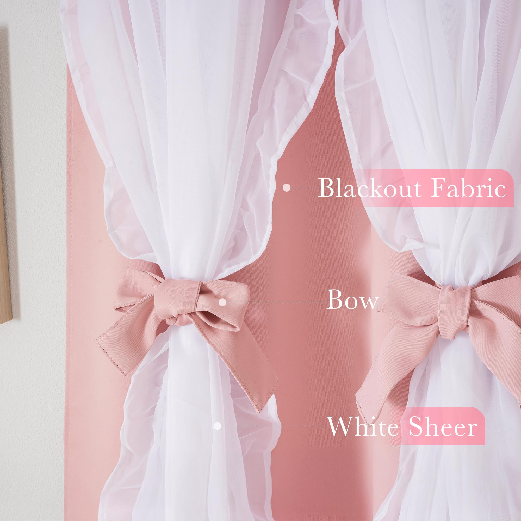 Double Layers: Made of 100% polyester fabric, block out a fair amount of light & heat while adding privacy. The white sheer panel bring an elegant and luxurious feeling