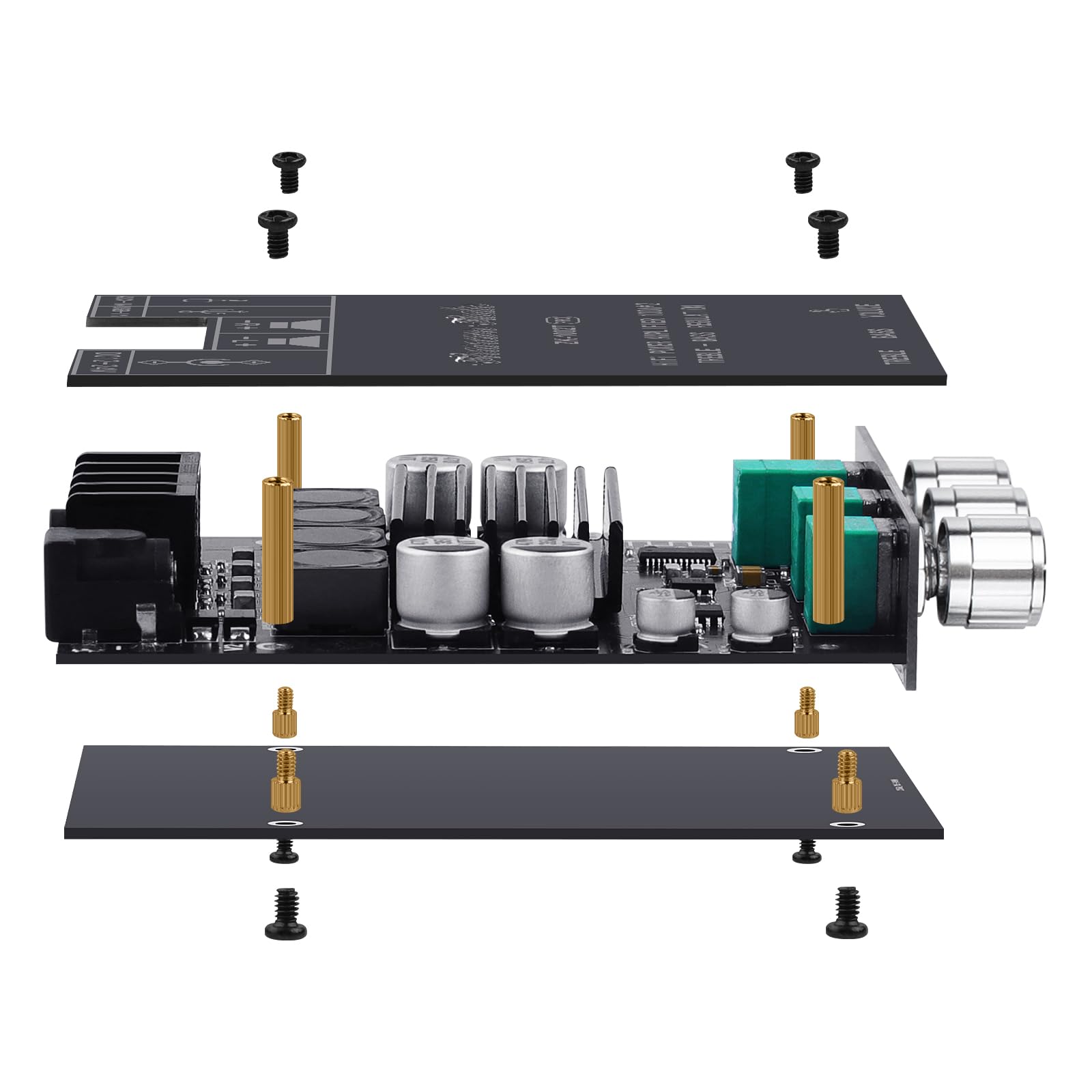 Treble and Bass Adjustment: This digital Amp board with independent treble and bass adjustment buttons,you can directly adjust the treble and bass through the module, without using the player or speaker;