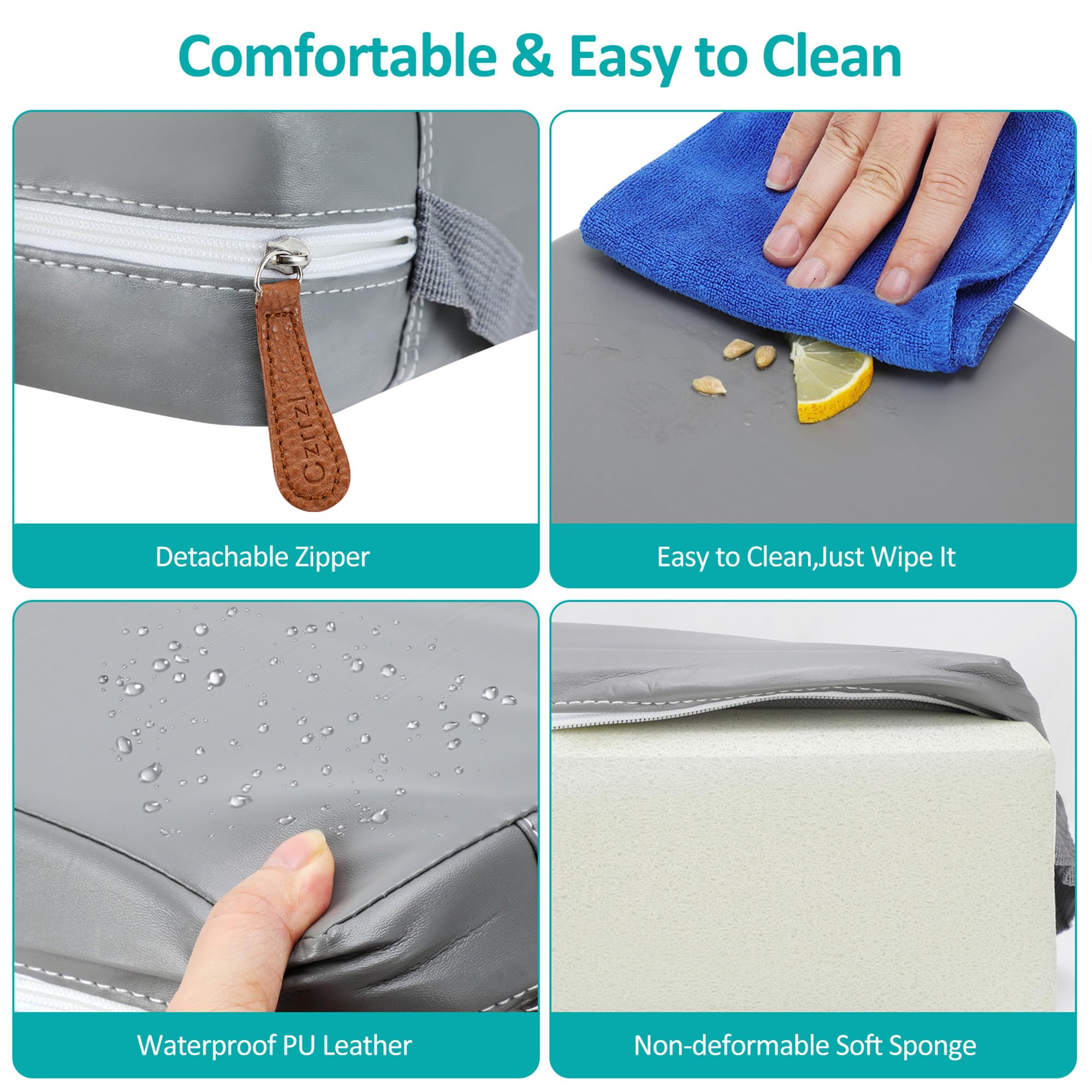 DETACHABLY & WASHABLE - Booster seat table toddler is very easy to wipe clean If drops food on booster seat accidentally.And table booster seat for toddler adopts a zipper design,so the cover is super easy to take off and throw in the wash,which makes cleaning more convenient after every meal or activity we do on the table