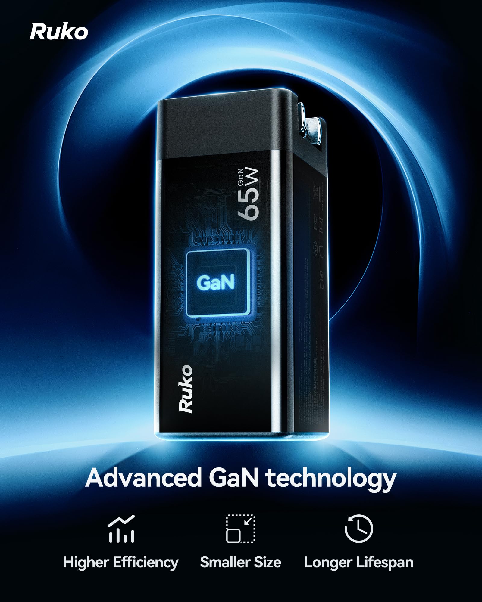 NEXT-GEN GaN TECHNOLOGY: Powered by GaN technology, this charger delivers up to 65W fast charging with superior efficiency and cooler operation. The innovative stacked design and upgraded circuit board structure make this compact charger a powerhouse without sacrificing power.