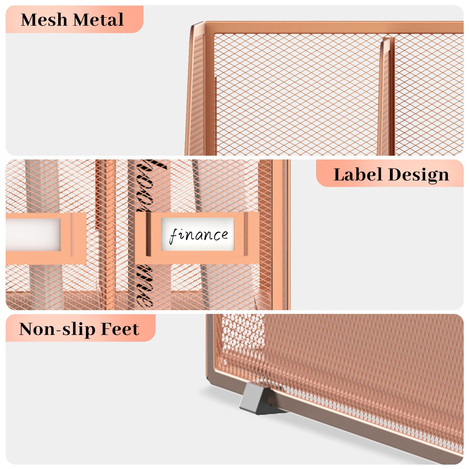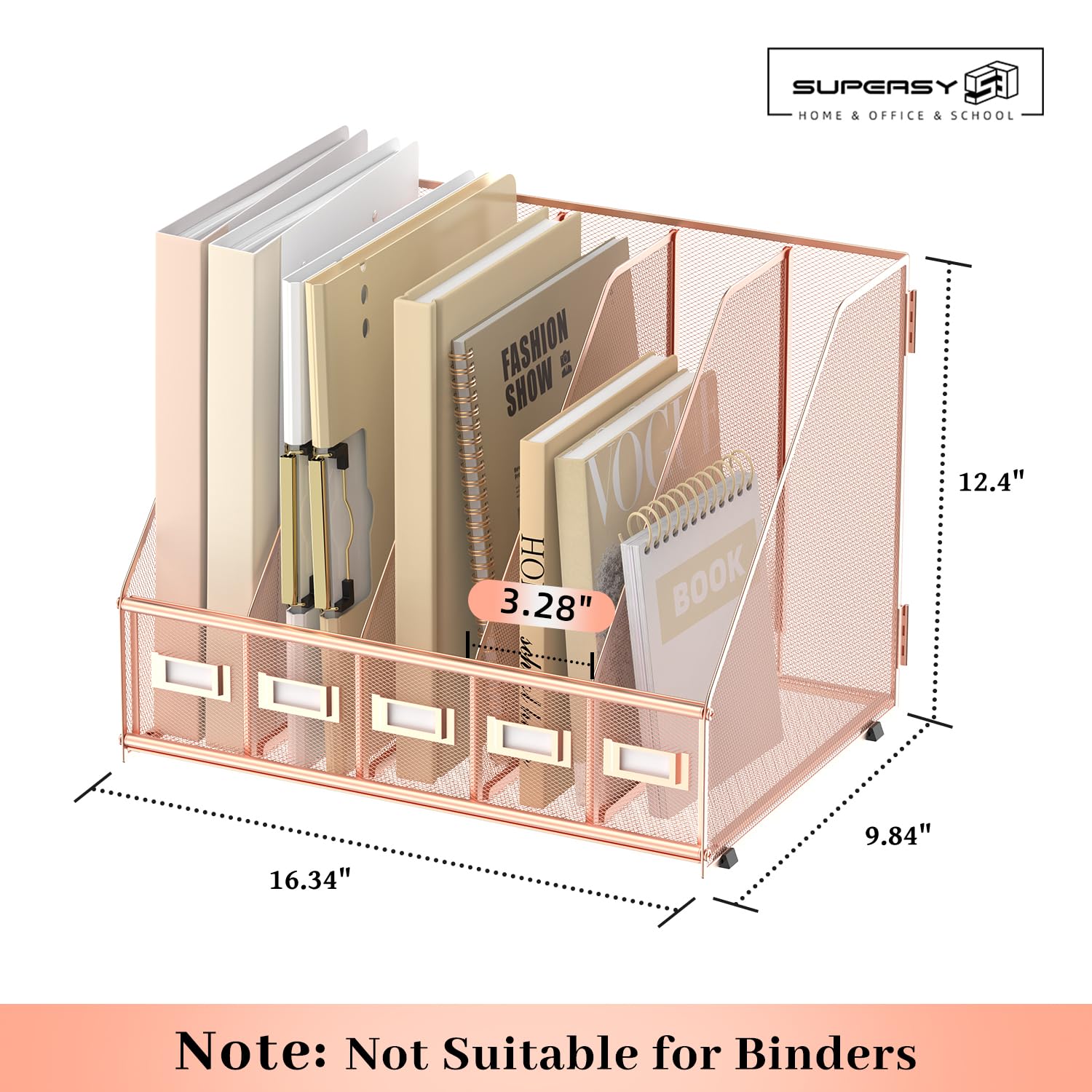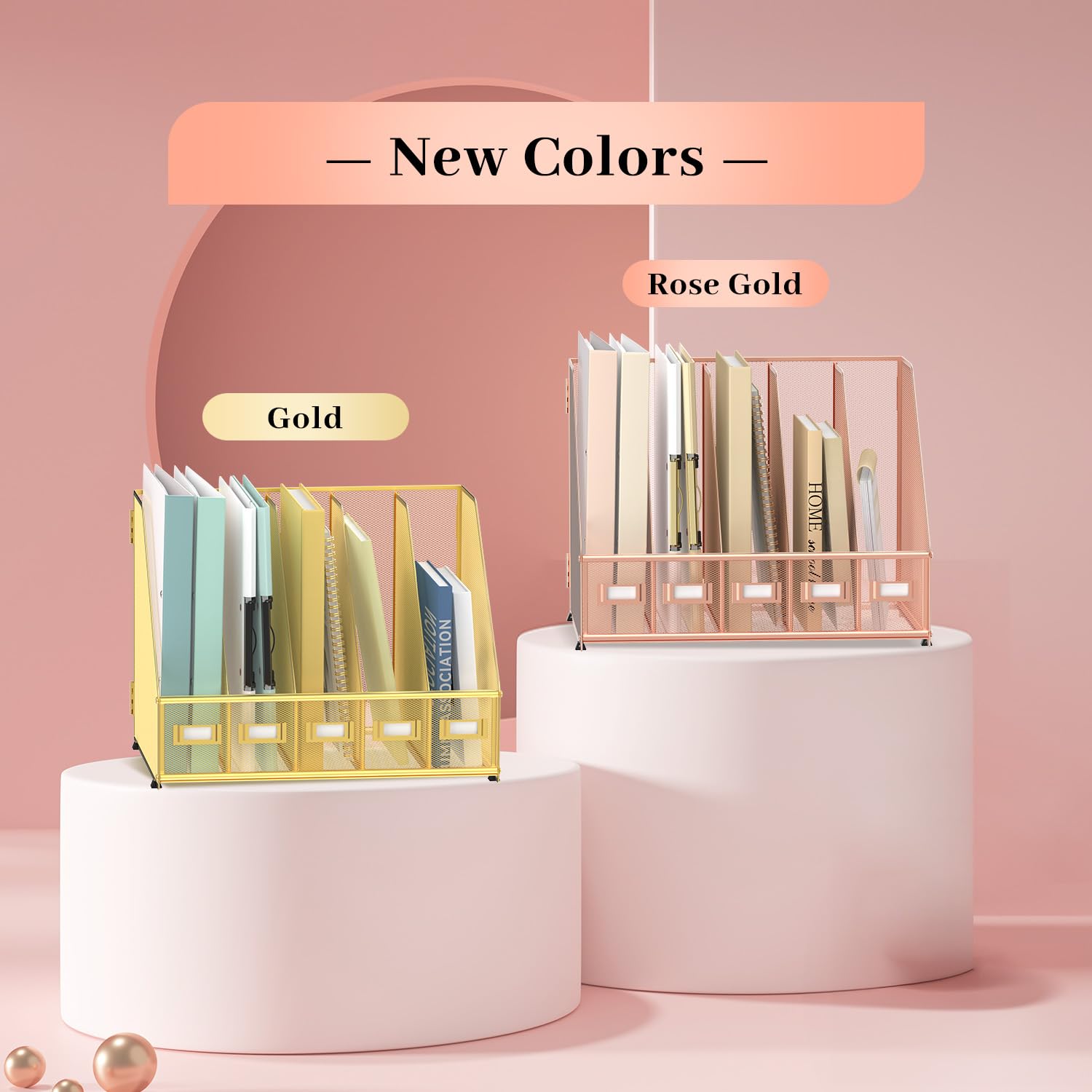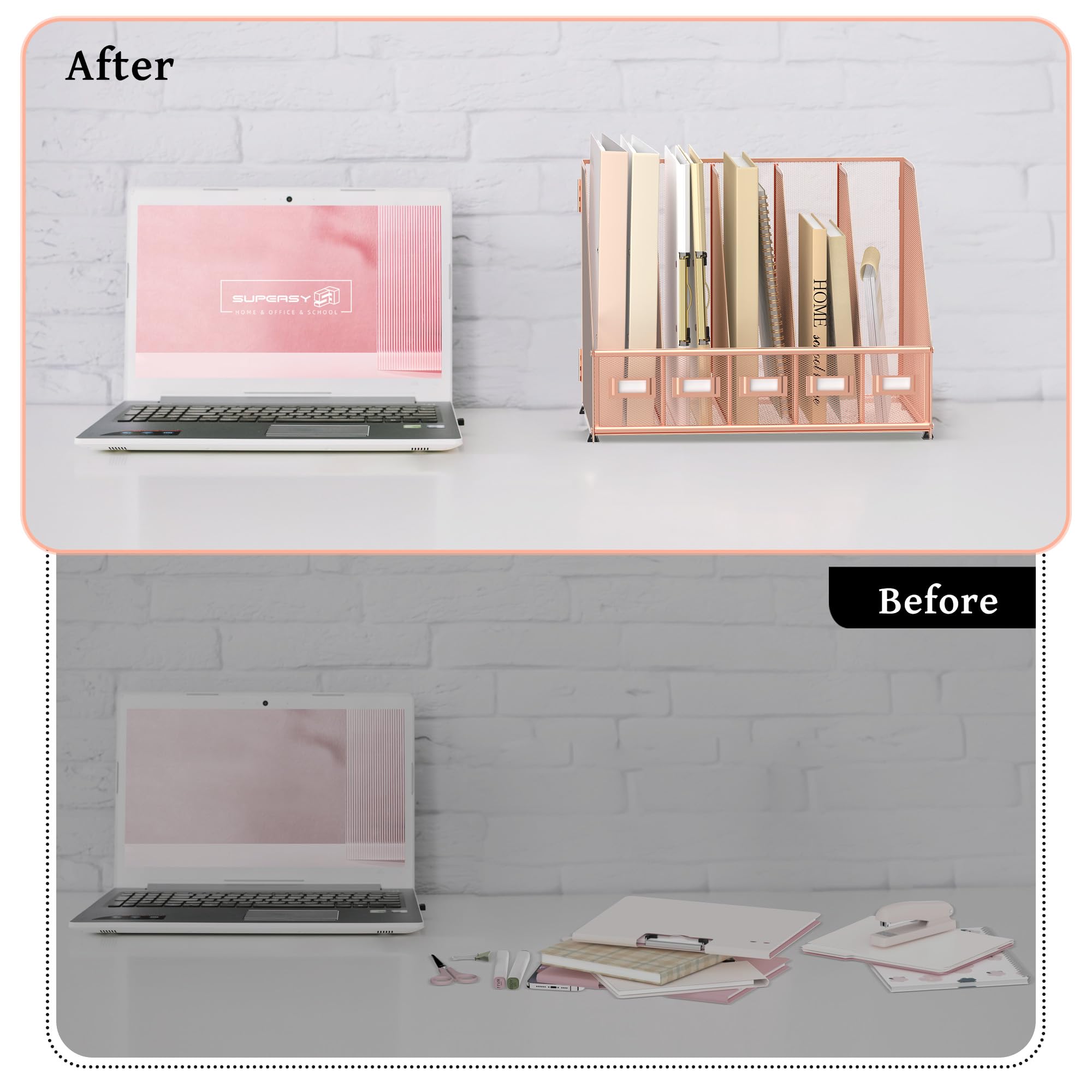 [Space-Saving] Our mesh magazine file holder features 5 compartments, designed to consolidate your desktop items. This file organizer tames desk clutter, saves valuable space, and maintains a clean and orderly workspace.