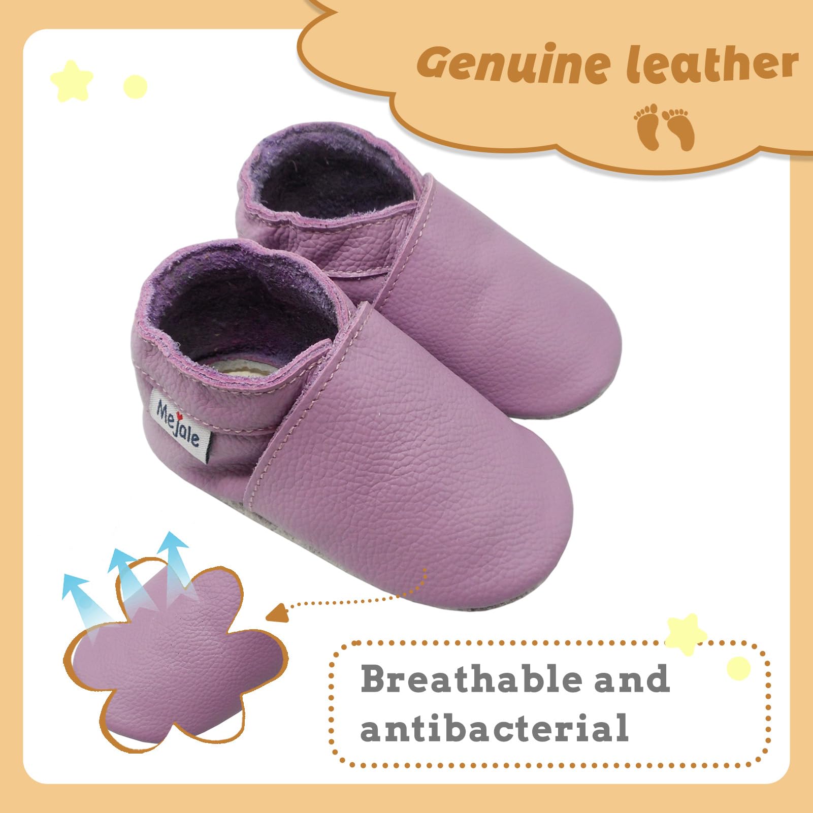 PREMIUM: The suede leather sole is perfect for new walkers both indoors and light ground outside. Perfect for newborns, babies, infants and toddlers alike.