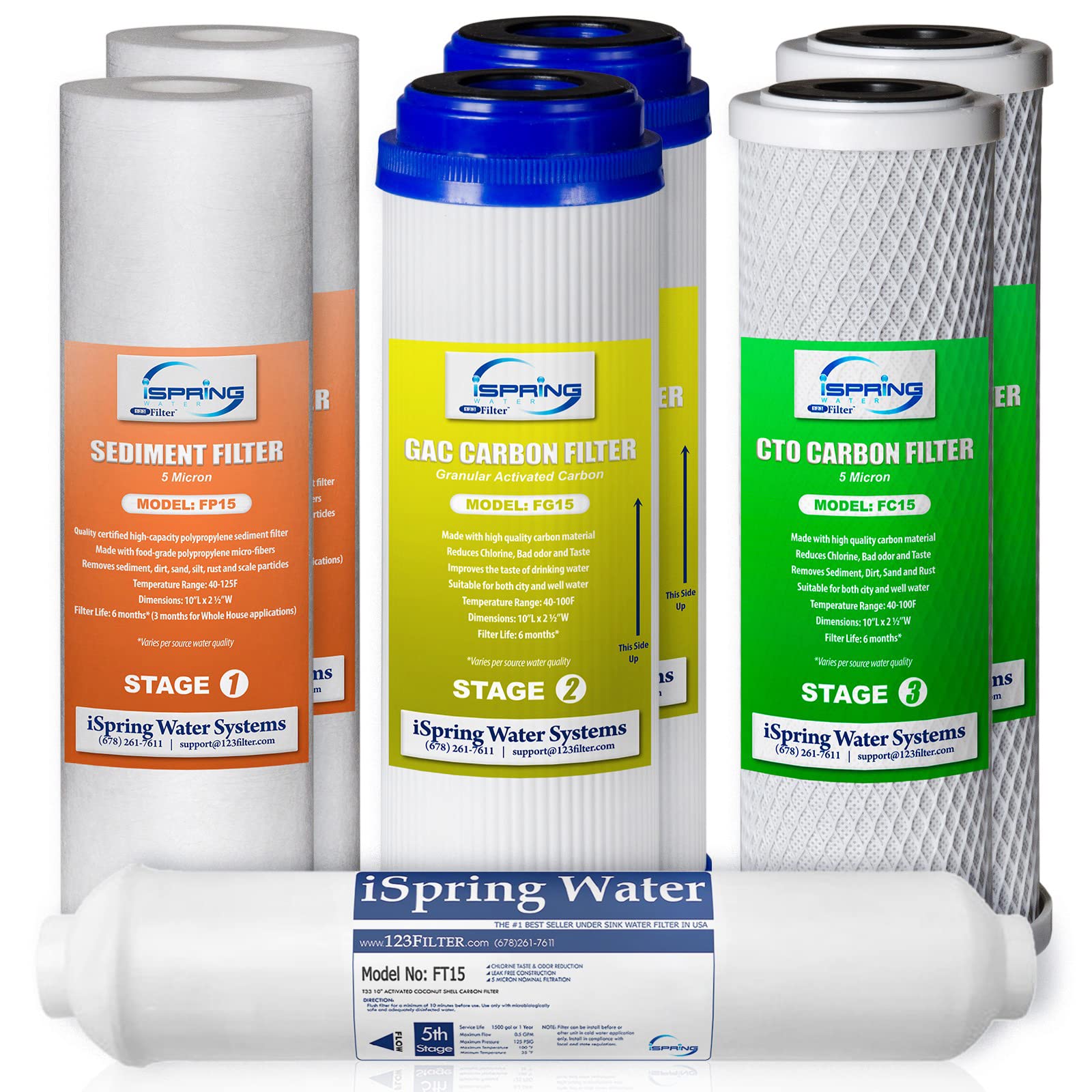 Comes with 7 replacement filters total - 2 sediment filters, 2 GAC filters, 2 carbon block filters, and 1 post carbon filter - for 1 year of clean water