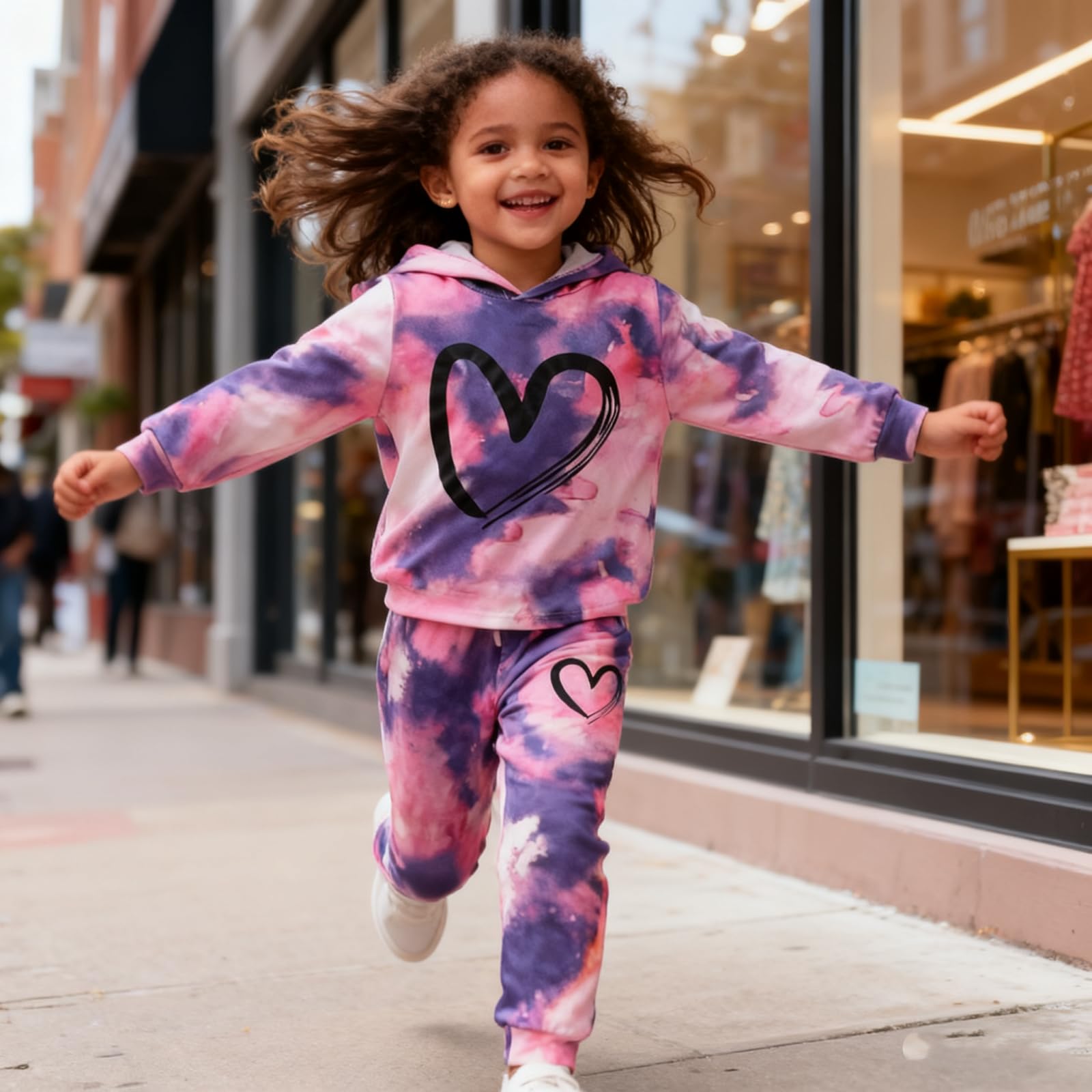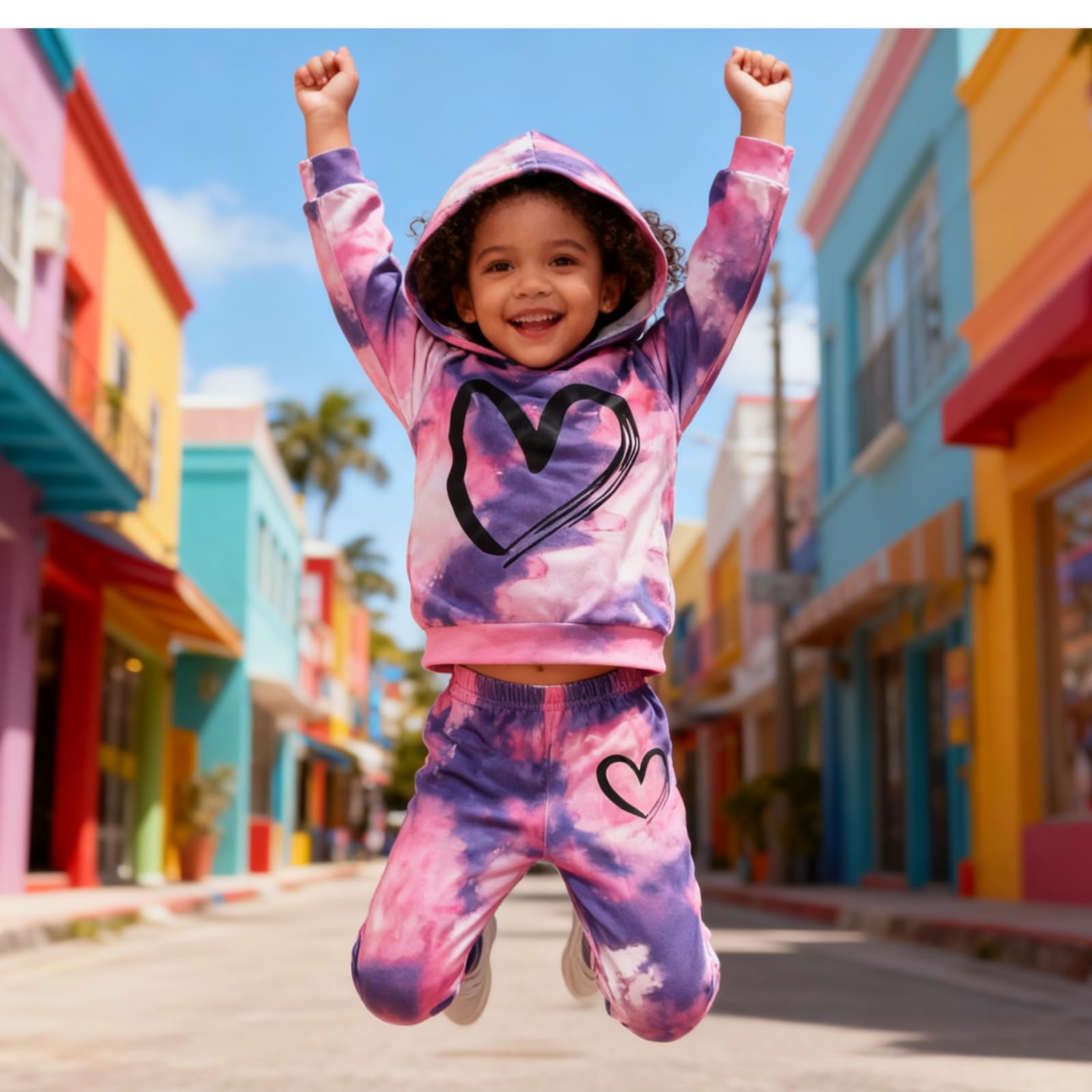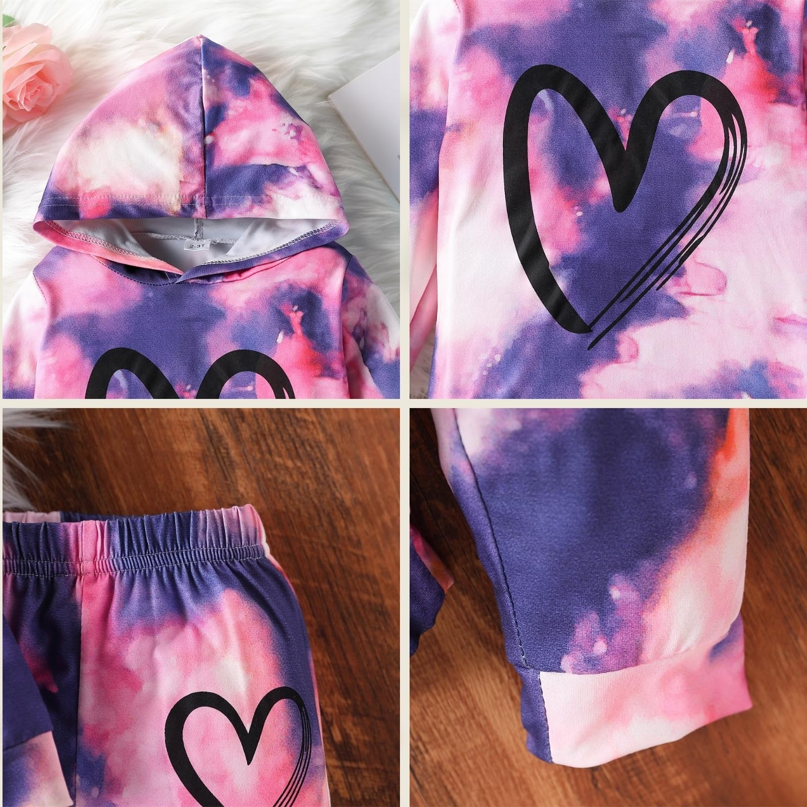 💖 Fashion Design : 2-6T Toddler Baby girl fall outfits, tie dye hoodie long sleeve sweatshirt and pants, unique heart graphic make your little girls look adorable and fashion, will be get lots of compliments.
