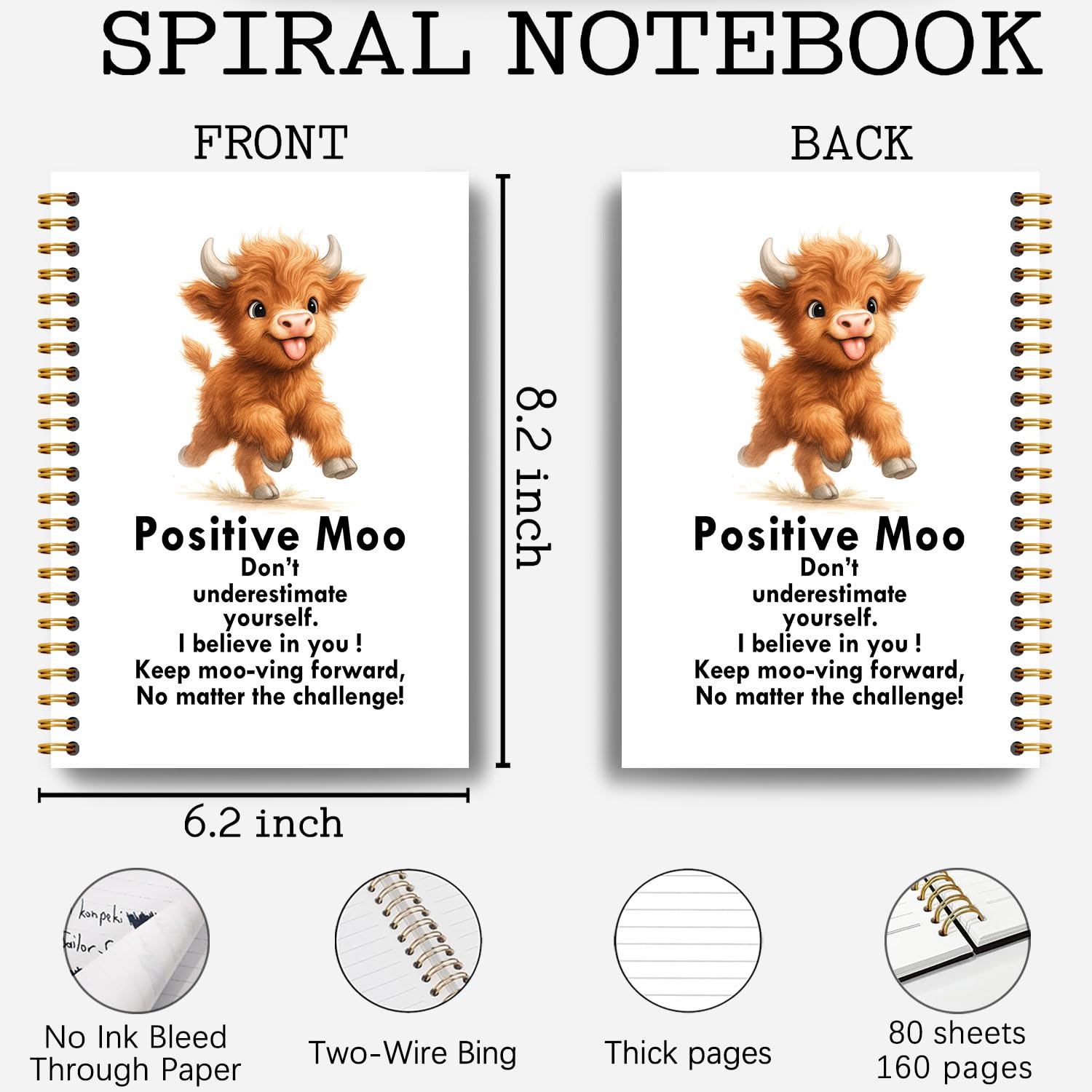GENEROUS PAGE COUNT: This spiral notebook boasts 80 pages and 160 sides, providing ample space for all your notes.