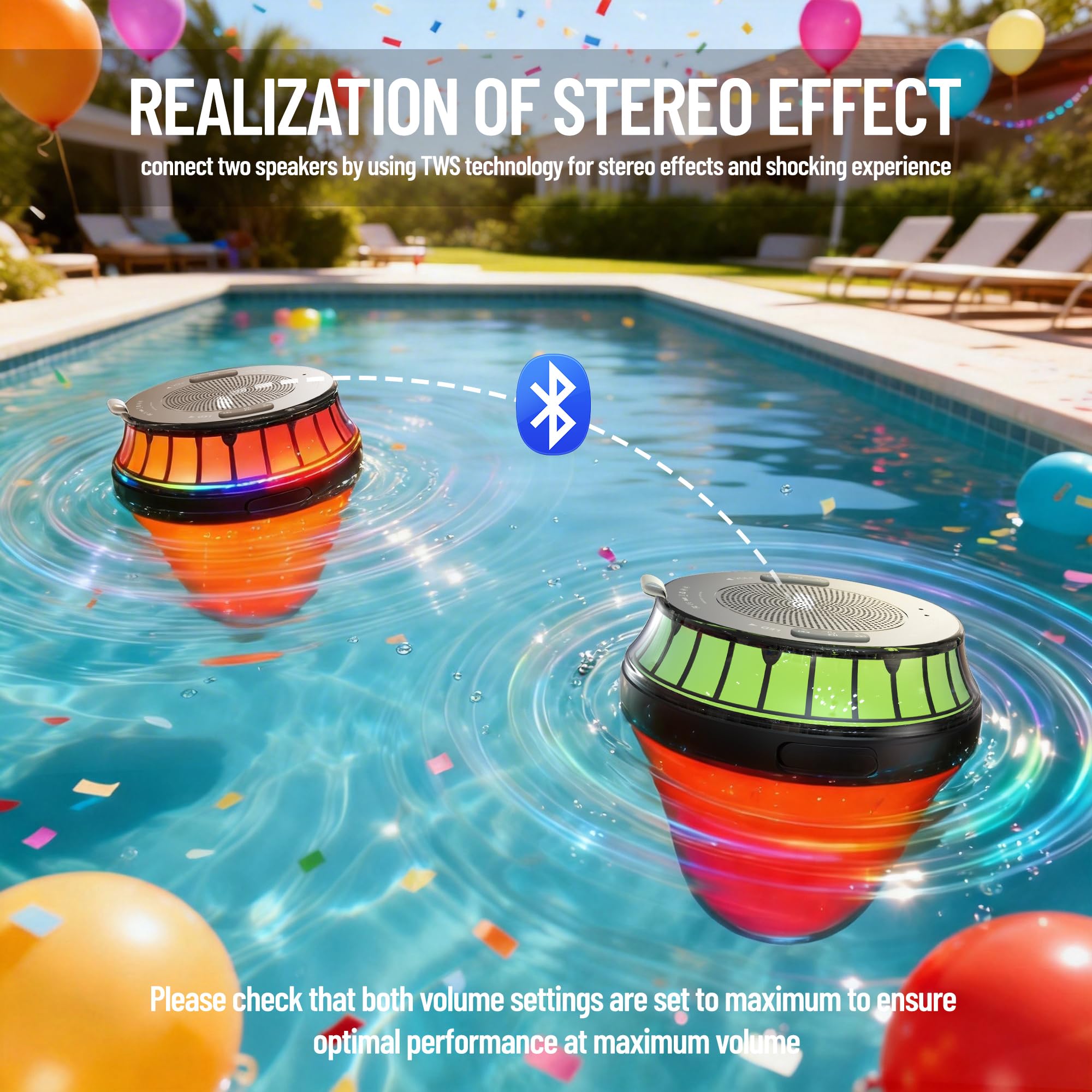 [More Details] – The pool floating speaker supports BT 5.4 connection to make you transmit music through wireless way. You may connect two speakers by using TWS technology for stereo effects and shocking experience. In addition, the ingress protection of the floating pool speaker is IPX7, making it an ideal pool, hot tub accessory for your bathing and beach activity