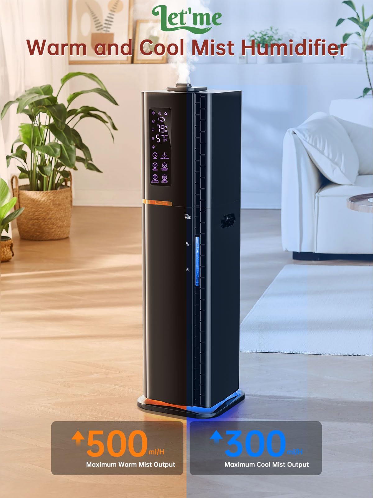 【One Humidifier for All Seasons!】This versatile humidifier features both cool and warm mist options, making it ideal for year-round use. Enjoy a refreshing cool mist during hot summer days, while the soothing warm mist provides comfort during chilly winter nights. Its gentle formula is skin-friendly and disperses quickly for maximum relief. Additionally, this humidifier includes several thoughtful design :1.Top-Fill Design; 2.Visual Water Level Window; 3.LED Control Panel; 4.Remote Control.