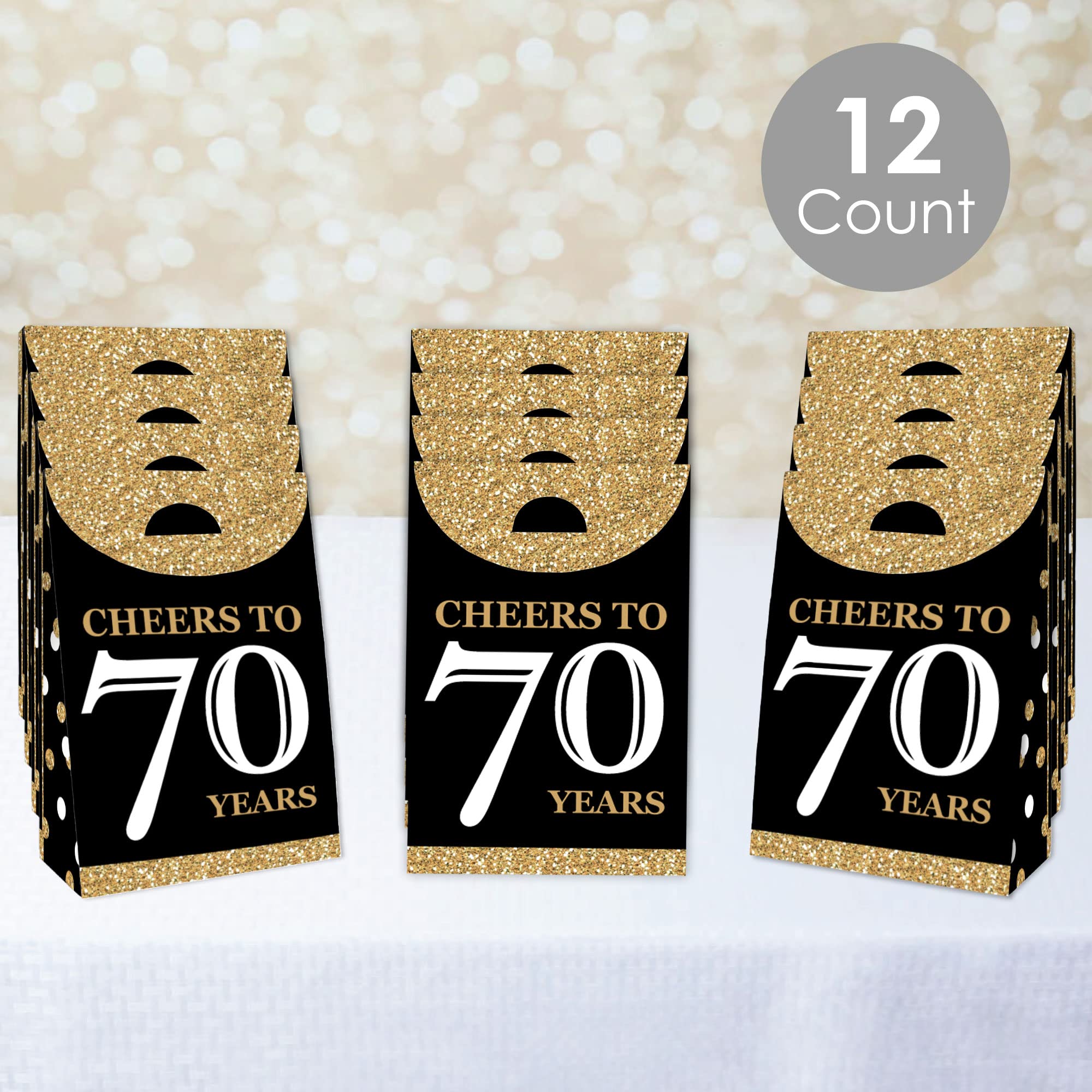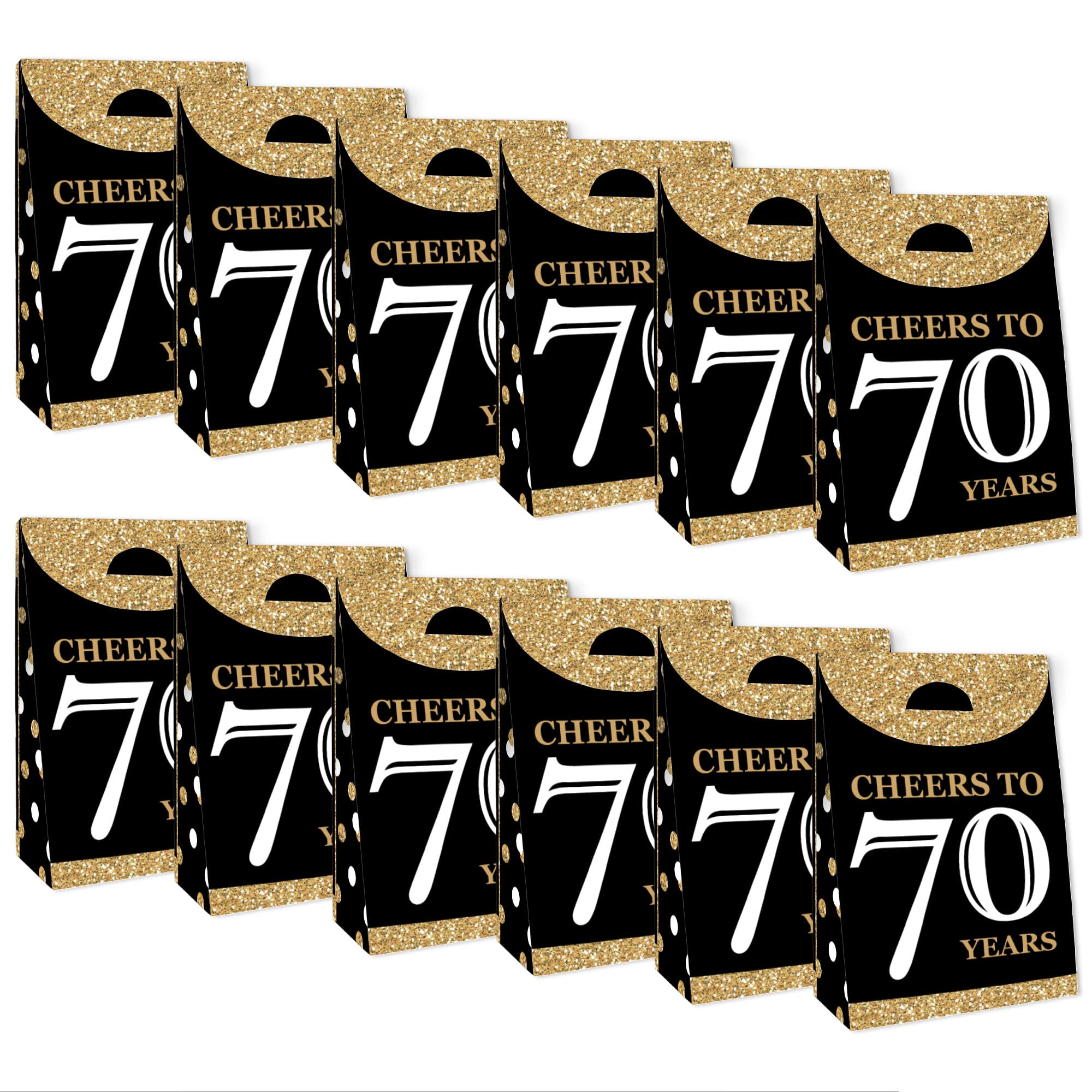 Adult 70th Birthday - Gold Party Goodie Bag INCLUDES 12 gift favor bags that are perfect for a birthday party. Each bag SIZE measures 4.75” length x 2.5” wide x 7” tall. Party Goodie Bags are excellent for small gifts, treats, and other party favors.