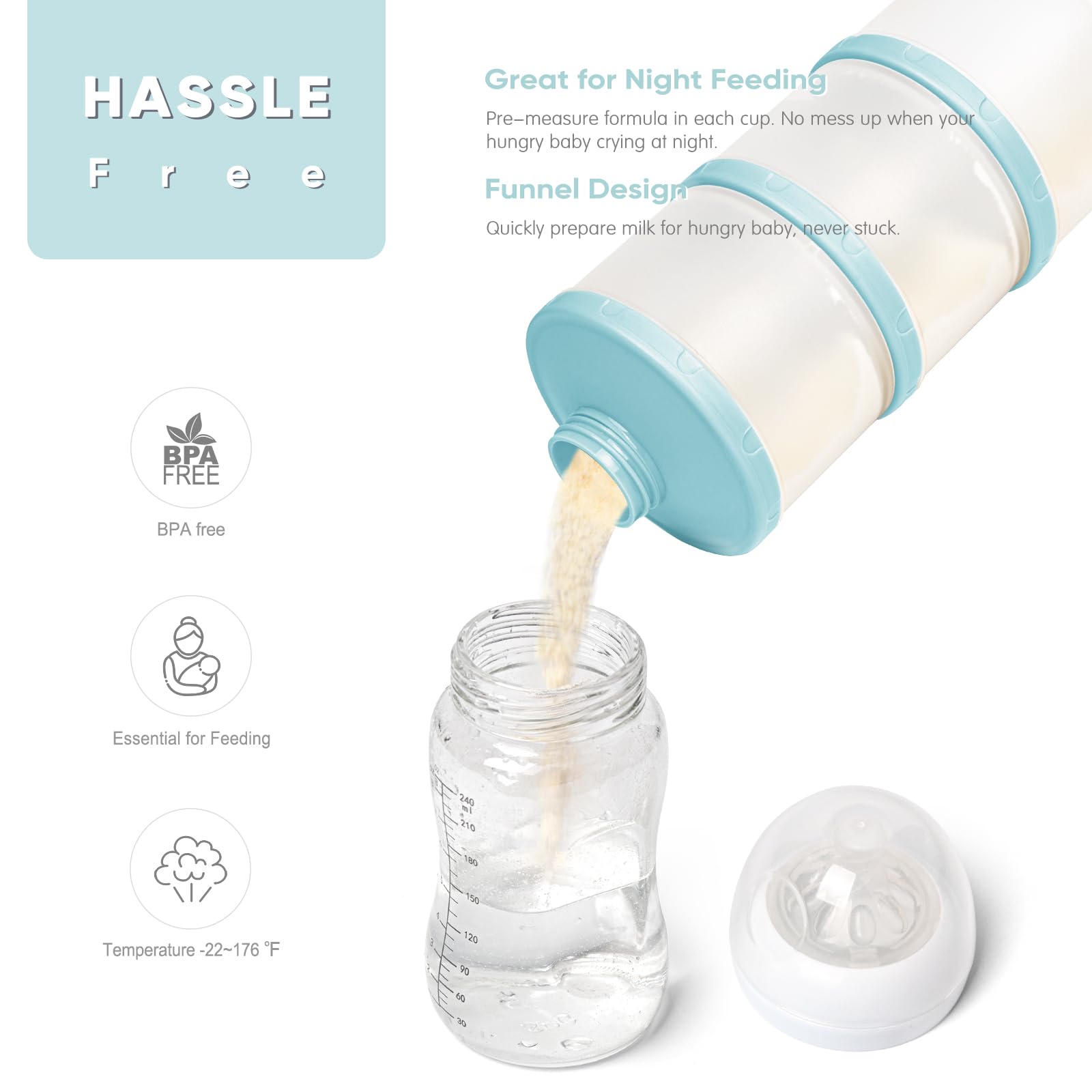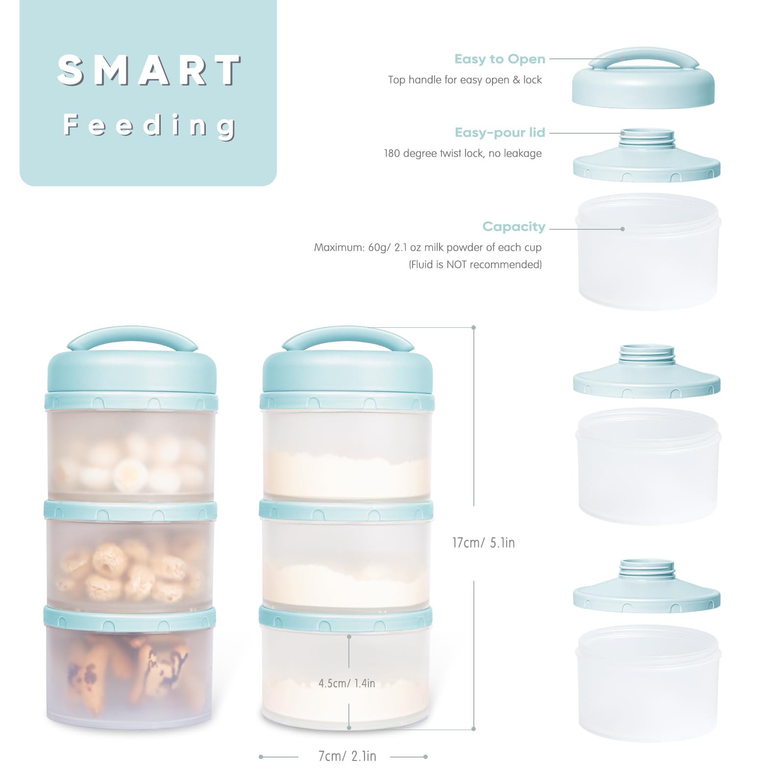 Safe and Portable: The formula container is made of food-grade pp plastic, BPA free. Each container can hold 60g/ 2.1 oz milk powder. Easy baby feeding and parents stress free.