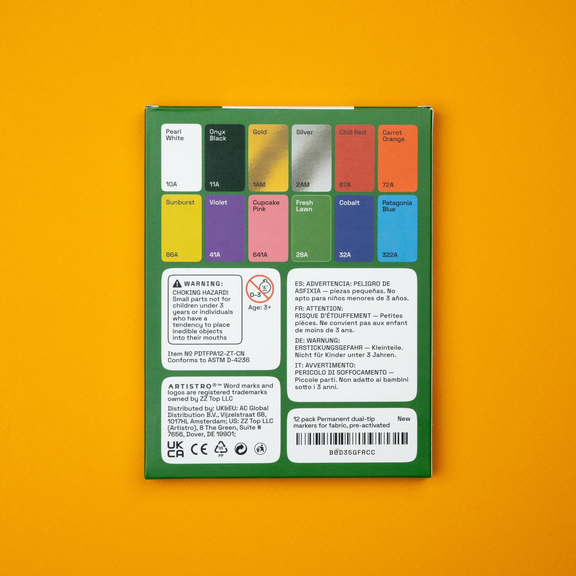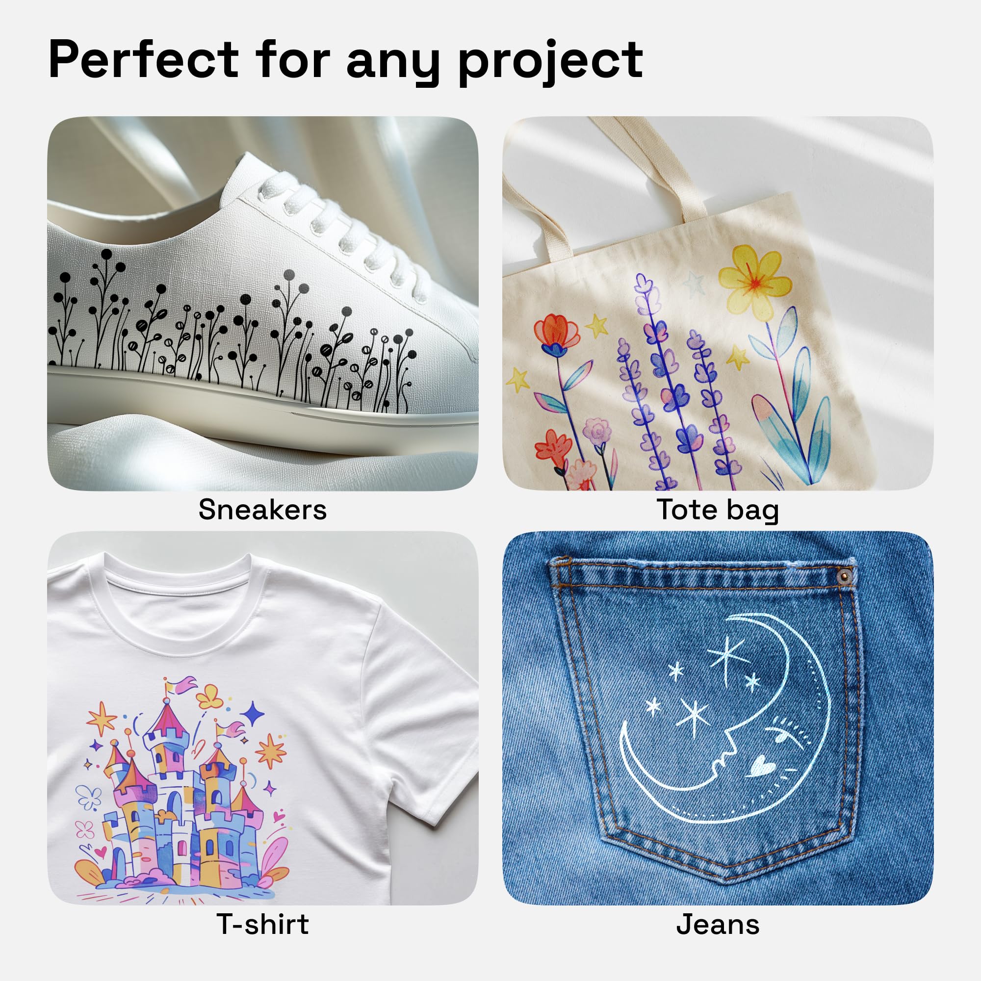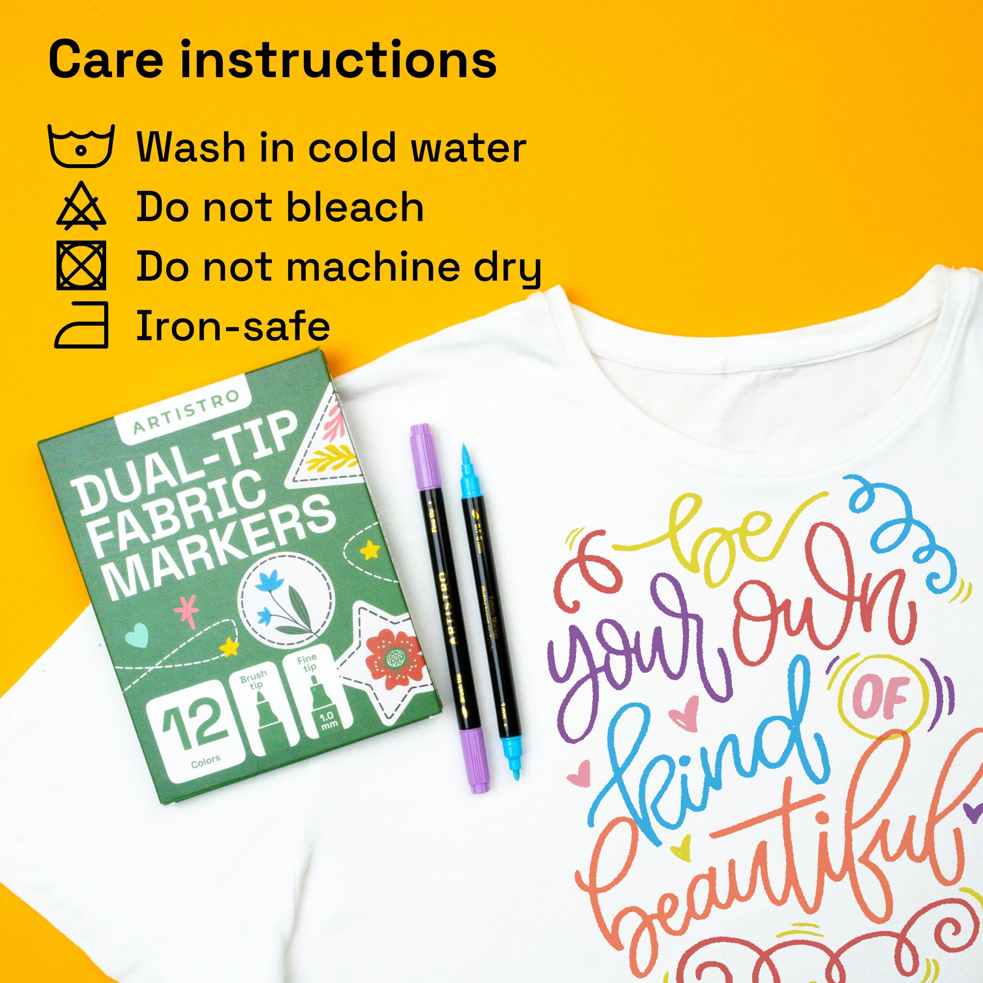 Permanent: Once applied and heat-set with an iron, the clothing paint becomes permanent, ensuring your designs stay intact wash after wash. Each fabric pen is perfect on cotton, denim, polyester, and more.