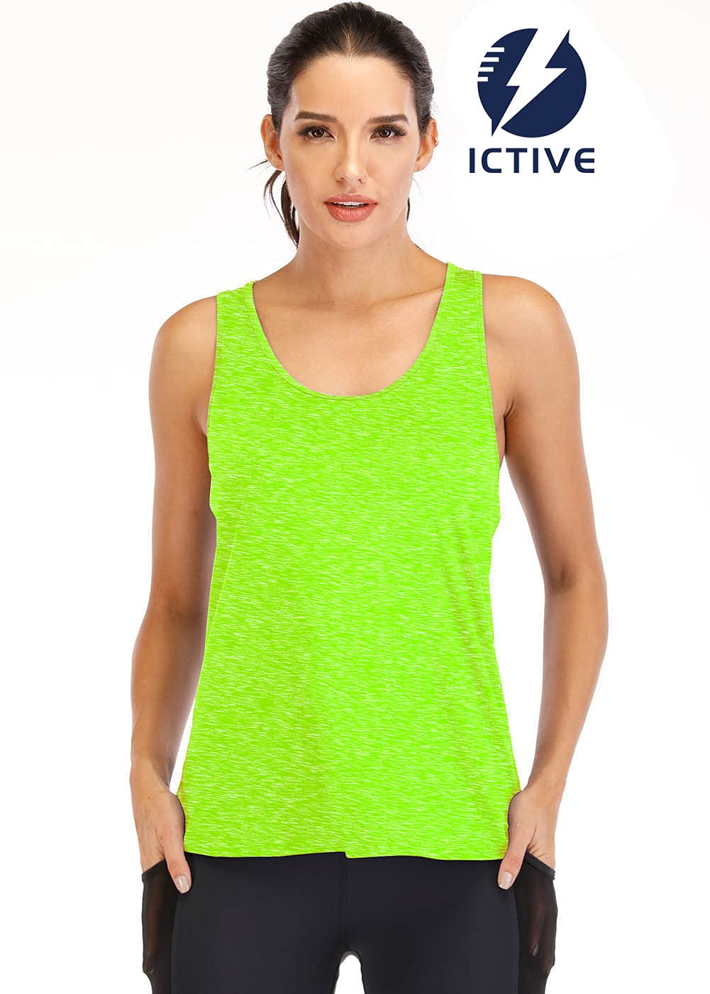 ICTIVE Workout Tank Tops for Women Yoga Tops Loose Fit Backless Racerback Tank Summer Running Gym Shirts Neon Green M