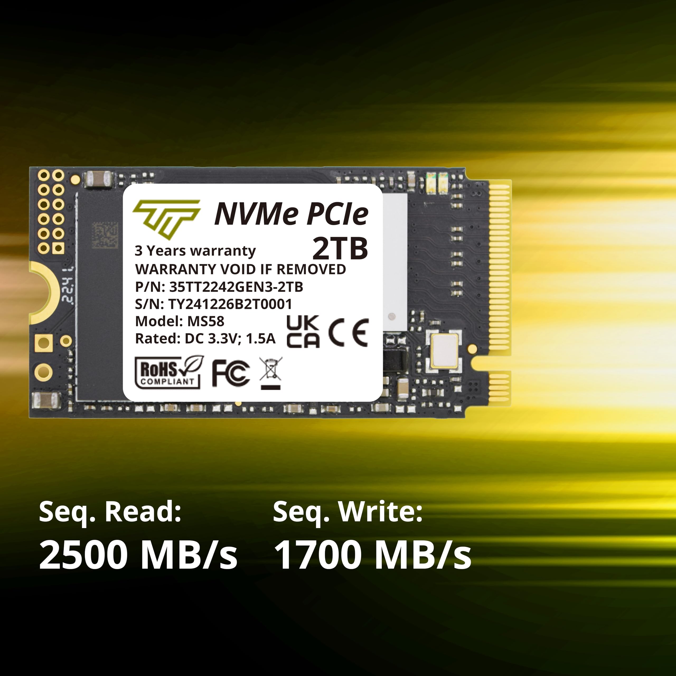 Size (22mmx42mm) NVMe PCIe Gen3x4 3D NAND Breakthrough Read and Write Speeds: Sequential Read Speed up to 2,500MB/s and Write Speed up to 1,700MB/s, the advanced SLC Cache Technology allows performance boost and longer lifespan