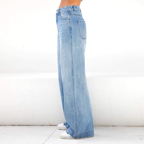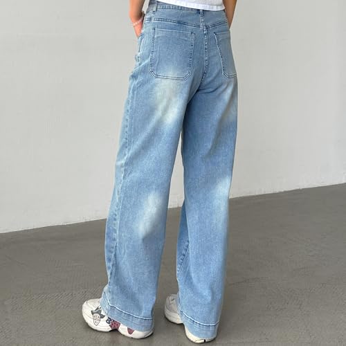 Denim trousers for women come with 4 traditional pockets. Intentionally distressed design in the pockets' edges, providing these women's jeans with both style and function. Y2k baggy jeans with zip fly, button closure and belt loops for your ease of use.
