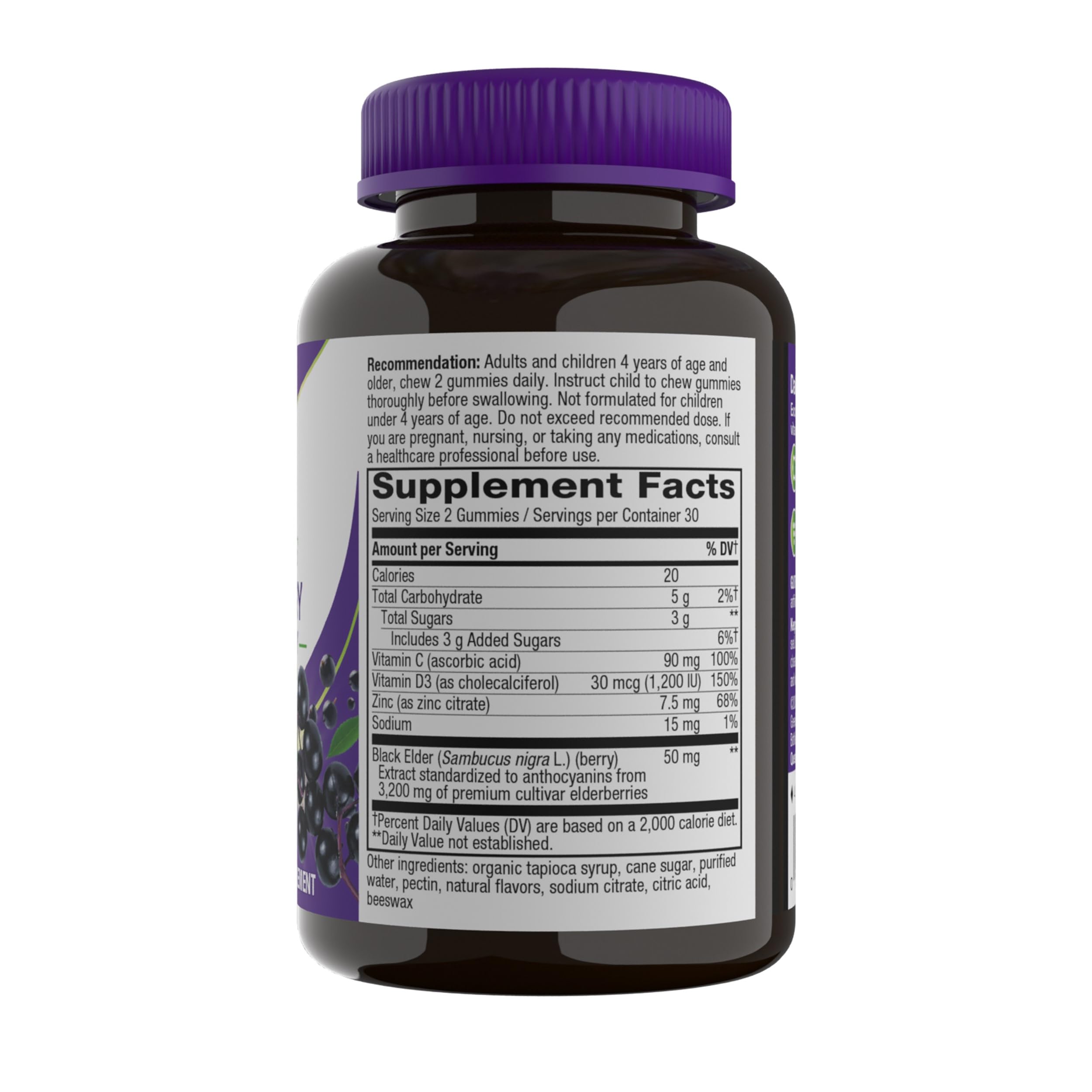 Make immune support simple and delicious with Natureβs Way Sambucus Elderberry Immune Gummies for ages 4+.* Each 2-gummy serving delivers high-potency vitamin C and vitamin D3, an excellent source of zinc, and our premium black elderberry extract.* Elderberries are carefully hand-picked at peak ripeness in select European regions and extracted to preserve naturally-occurring anthocyanins that provide antioxidant support.* Gluten-free, vegetarian, and made with plant-based pectin, these tasty gummies fit easily into your daily wellness routine.*This statement has not been evaluated by the Food and Drug Administration. This product is not intended to diagnose, treat, cure, or prevent any disease.