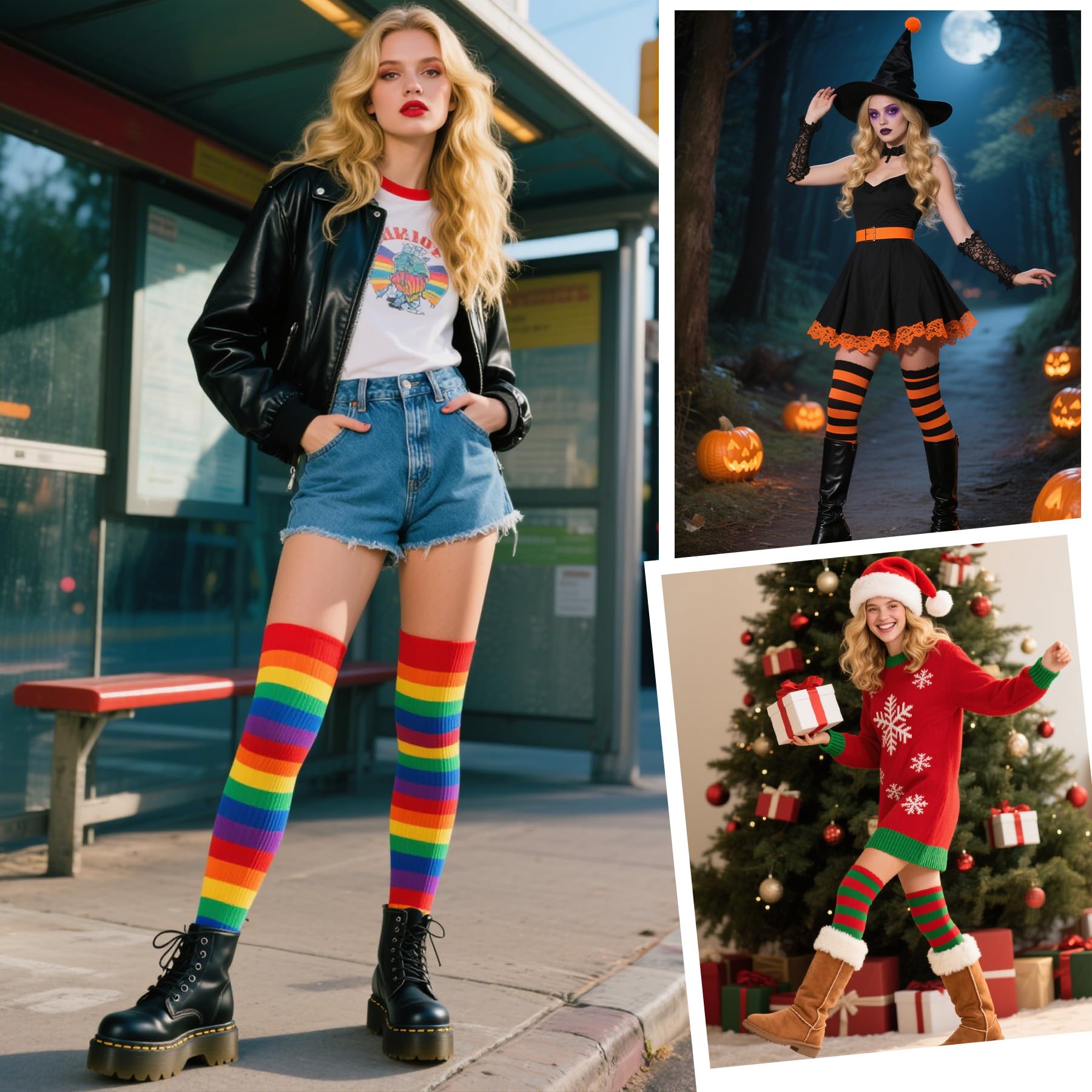【Perfect Clothing Accessories】 These womens long knee High socks for women are great to pair with shorts, mini skirts, boots, heels, sweater dress. And also suitable for Daily Wear, Anime Preppy, Stage Show, Sports Meeting Show, Comics Fairs, Cosplay Party or Halloween / Christmas Costume Party!