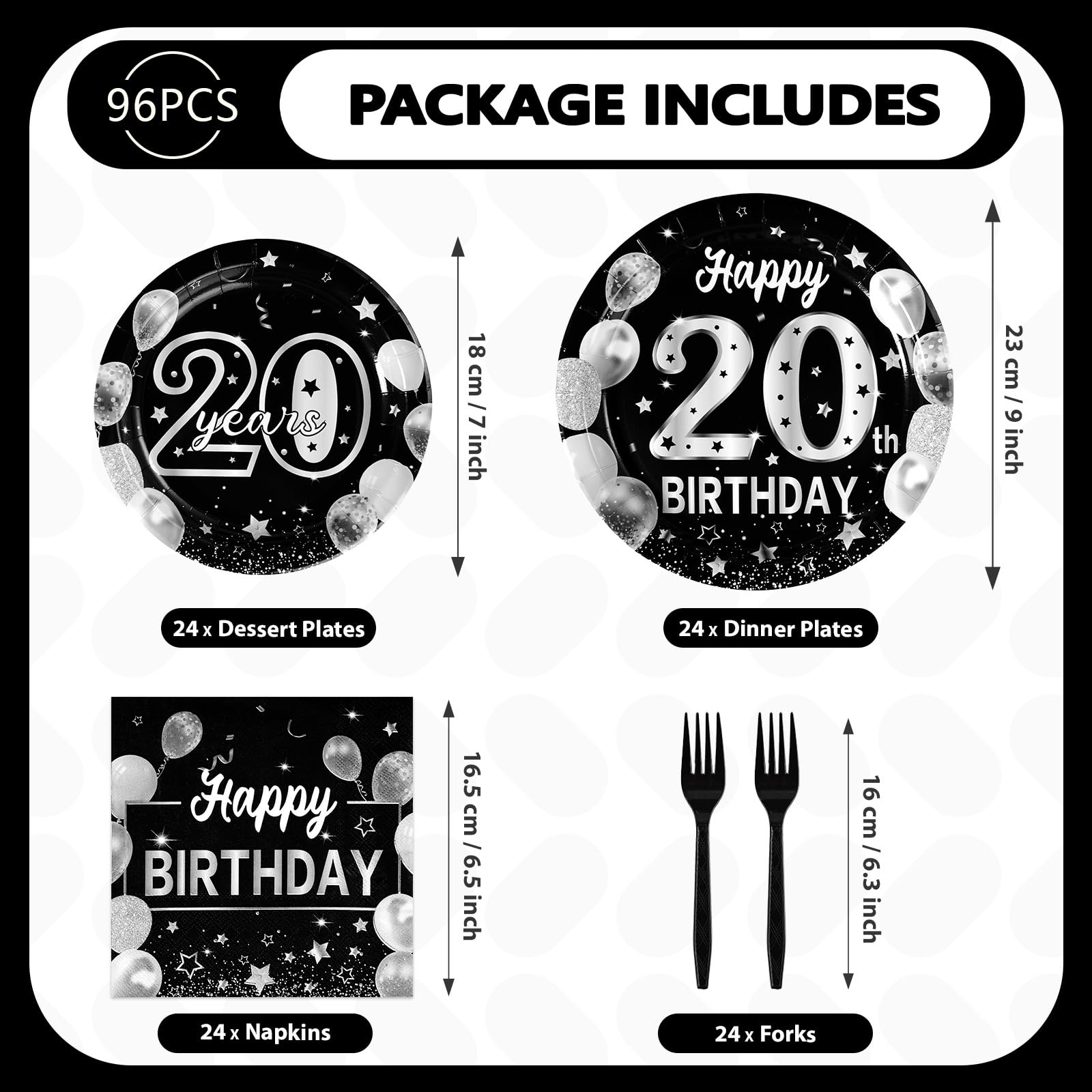 Perfect for Any Occasion‌: Looking to throw a memorable 20th birthday party? Look no further than our elegant silver and black tableware set. Ideal for milestone birthdays, sweet 20 celebrations, or any other special occasion, this set will help you create a coordinated and festive atmosphere that your guests will love. With its stylish design and comprehensive set of essentials, this tableware set is a must-have for any birthday party planner